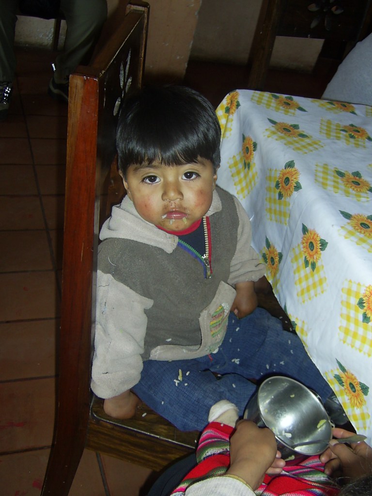 Caminamos más de siete horas, pero disfrutamos de la belleza del paisaje. La satisfacción del esfuerzo realizado nos llena de alegría al llegar allí y ser tan bien acogidos por sus habitantes, que nos esperan para comer. Por la tarde visitamos la escuela donde hacemos un intercambio con la maestra  y los niños, cantando y bailando juntos. Después hacemos una reunión en que nos explican cómo se organizan los comuneros. Cada familia, de las diecisiete que viven en la aldea, escoge a uno de nosotros para llevarnos a su casa. Yo voy a casa de Vicenta, con quien disfruto de una cena muy íntima a la luz de una vela y la brasa del hogar. Contemplo a una mujer tratada duramente por la vida, pero también con mucha fortaleza. Me da una manta y un pellejo para dormir. Por la noche nos reunimos todos alrededor de una fogata en el campo y compartimos charlas muy interesantes.