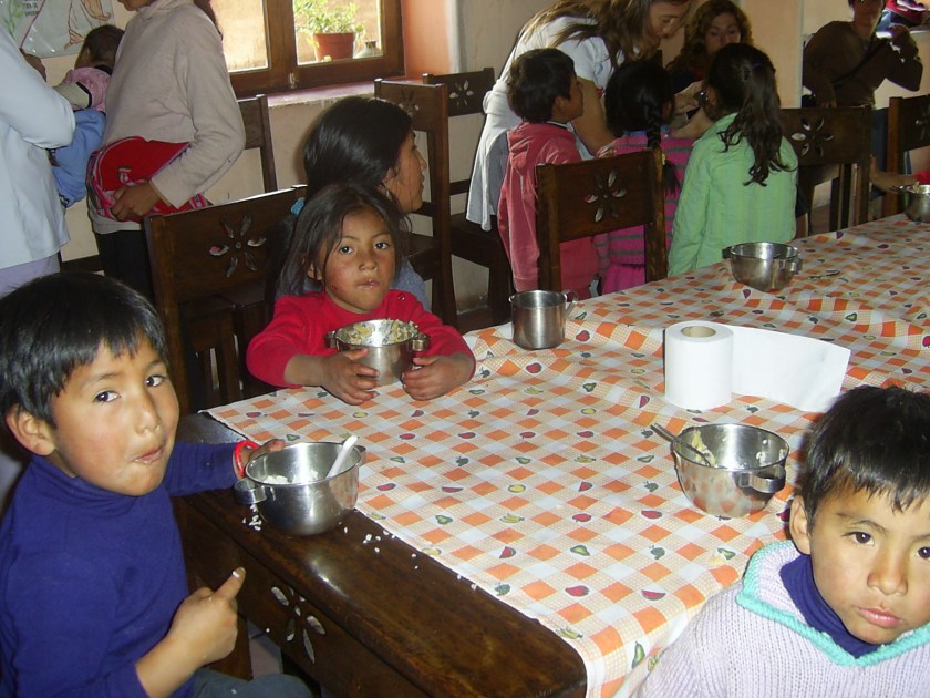 Llevamos unos medicamentos al Proyecto Mantay. El matrimonio responsable nos ha explicado cómo están ayudando a madres adolescentes con sus hijos para puedan sacar adelante la familia. Quedamos admirados de la ilusión y del empuje con que llevan a cabo el proyecto. Vamos a una tienda donde se venden caramelos, bombones y helados de coca. Nos dicen que la coca es un símbolo de la cultura andina, en cambio la cocaína es nociva porque es una mezcla con productos químicos.