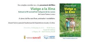 Al Casal de Cultura de Sant Llorenç Savall ha presentat el llibte: Viatge a la Xina, Rah-mon Roma, animador i rondallaire. Ha col•laborat en el llibre amb el seu testimoni de pare adoptiu d’una nena de la Xina. Ha amenitzat la trobada amb cançons dedicades a la seva filla. Durant l’acte s’ha passat l’audiovisual de l’experiència viscuda a la Xina.