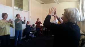 1. En aplegarem esperits belluguets en el taller de la Conxita. Ella amb el seu tarannà viu, ens ilusionà en aquest projecte de vida d’escriure vive ncies