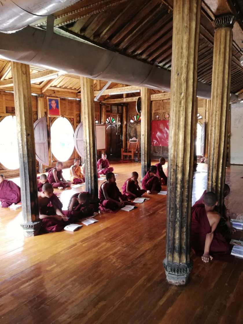 En el Monestir i  Pagoda Shwe Yan Pyay  podem veure uns monjos estudiant. Durant el matí els novicis reben ensenyaments de Buda, i aprenen a la vegada  a llegir i a escriure. La disciplina és el mètode per eliminar la ignorància. La resta del dia meditten, netegen i tots els dies surten amb el seu bol als pobles del voltant a buscar les ofrenes dels fidels, que generalment consisteix amb arròs i vegetals.