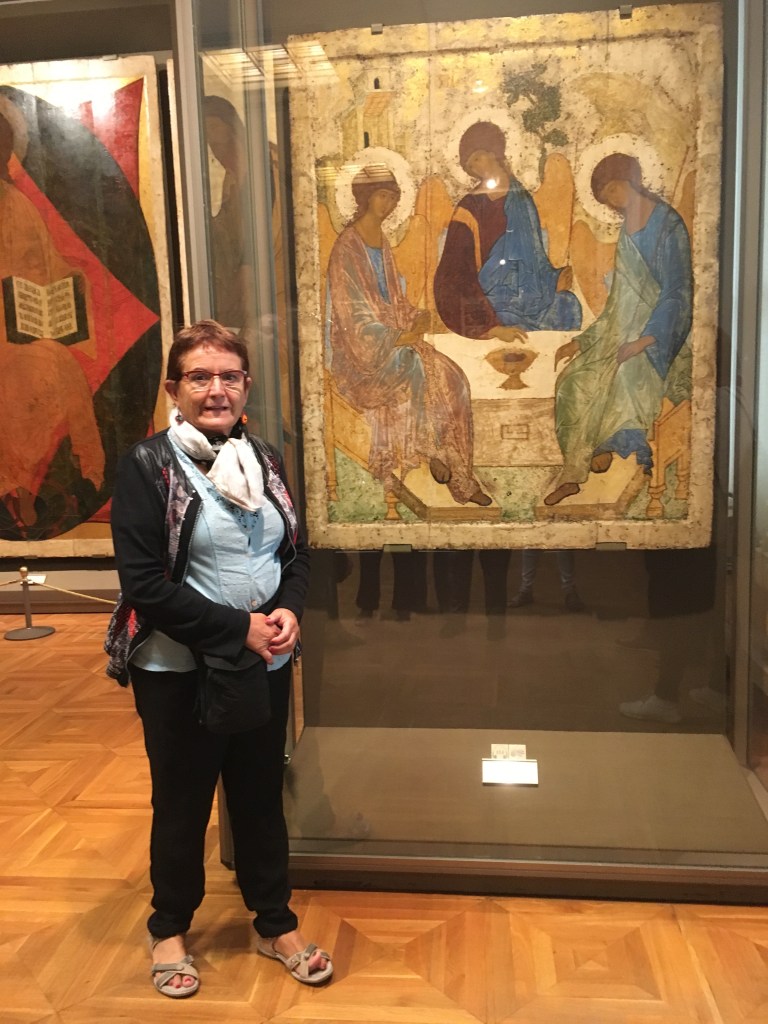 La Galeria Tretiakov posseeix un riquíssima col·lecció de pintura russa del segle XVIII al XX. Hi ha també un museu d’ icones del segle XII-XVIII. Tinc la sorpresa de veure l’original de l’any 1430 de la icona de la Trinitat que em connecta amb Taizé i m’he quedat una estona meditant.