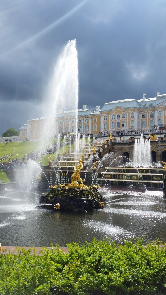 Visitem el Palau de  Peterhof, construït a l‘època de Pere I on hi ha unes trenta sales decorades amb grans obres d’art. Passegem pel parc amb uns jardins harmoniosos i bells. El que m’impressiona més són les fonts que amb els jocs de l’aigua es pot percebre una  simfonia aquàtica.