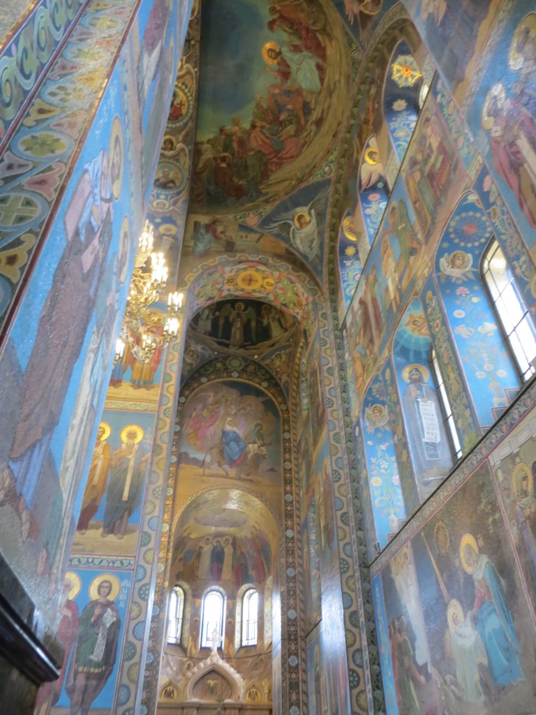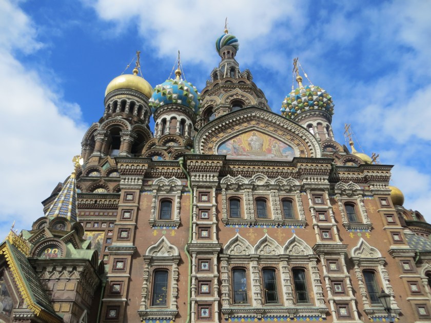 L’església del Salvador sobre la Sang Vessada, es va construir al lloc on el Tsar Alexandre II va ser assassinat, víctima d’un atemptat l’any 1881 a causa d’una bomba, per això en el centre sagrat hi ha un templet amb baldaquí, en record del Tsar. Em quedo meravellada observant l’increïble riquesa dels mosaics que brillen amb tots els seus colors a la llum del sol.