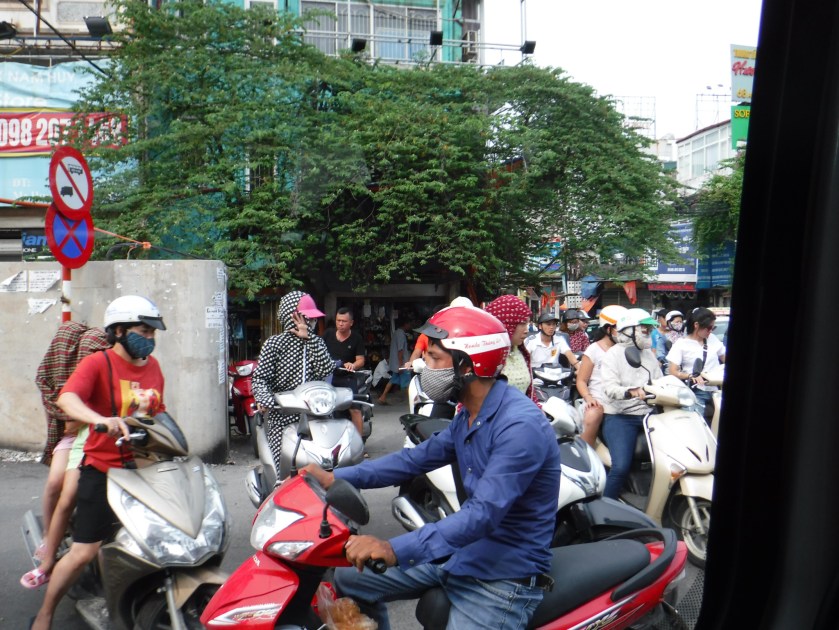 Las motos dominan las calles y aceras, las vemos por todas partes, para cruzar la calle las has de esquivar, es toda una aventura. Muchas de las motos van cargadas con más de cuatro personas aparte de paquetes, de telas, de flores y de todo lo inimaginable.