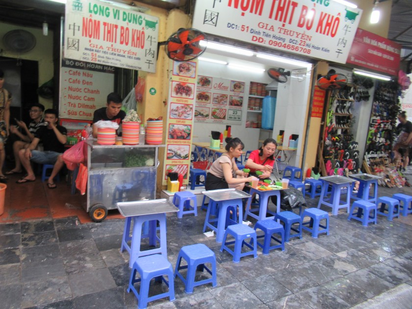 Vamos al mercado Dong Xuan, de tres pisos, uno de los lugares de más ambiente de la ciudad, donde se puede comprar desde artesanía, o reproducciones de antigüedades, a las últimas innovaciones tecnológicas. Me sorprende ver a las vendedoras sentadas sobre las telas. También me llama la atención la gran cantidad de peces secados de diversas especies.
