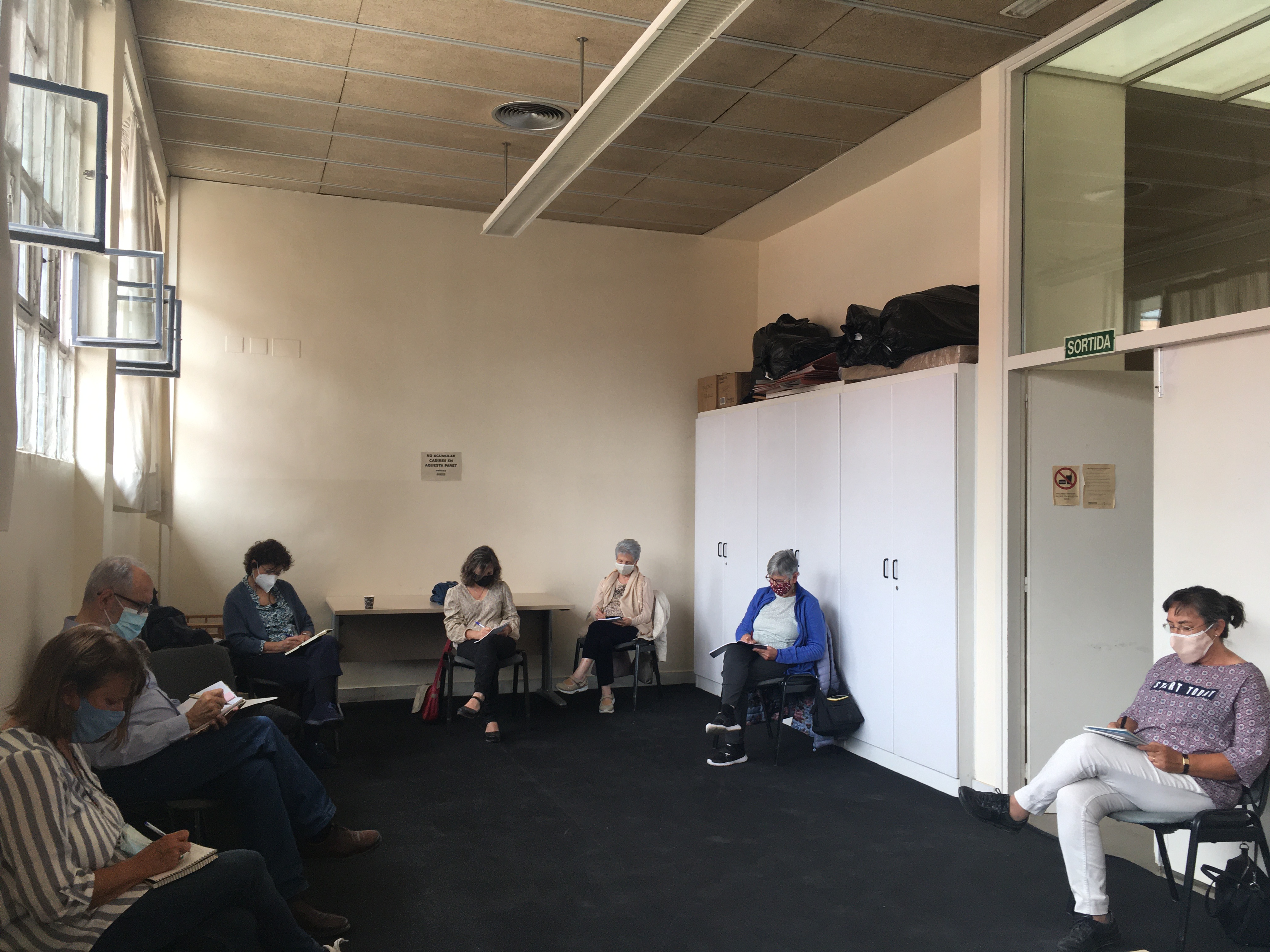 Ens hem reunit a una sala de l’Estruch. Ha constat d’una part teòrica on s’ha donat consells per escriure i orientacions per fer un diari personal. S’ha fet la pràctica d’escriure un petit diari de viatge sobre les coses que hagin impactat més i han deixat que flueixin els records. Hem fet exercicis d’ automassatge i moviment . Han posat nom a les emocions i als sentiments. Ha estat molt interessant l’intercanvi d’experiències entre els assistents. La valoració per part de tots ha estat positiva.