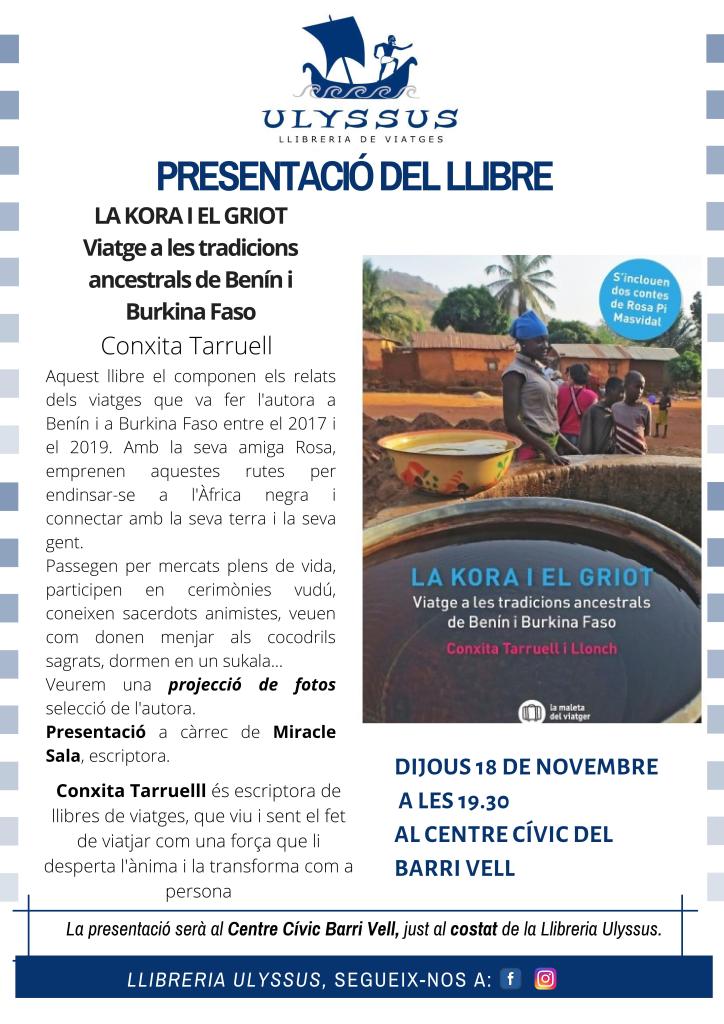 El divuit de novembre a la tarda, hem anat a Girona per presentar el llibre La Kora i el Griot a la llibreria Ulyssus especialitzada en viatges. Hem obert horitzons i ens hem transportat per terres africanes.
