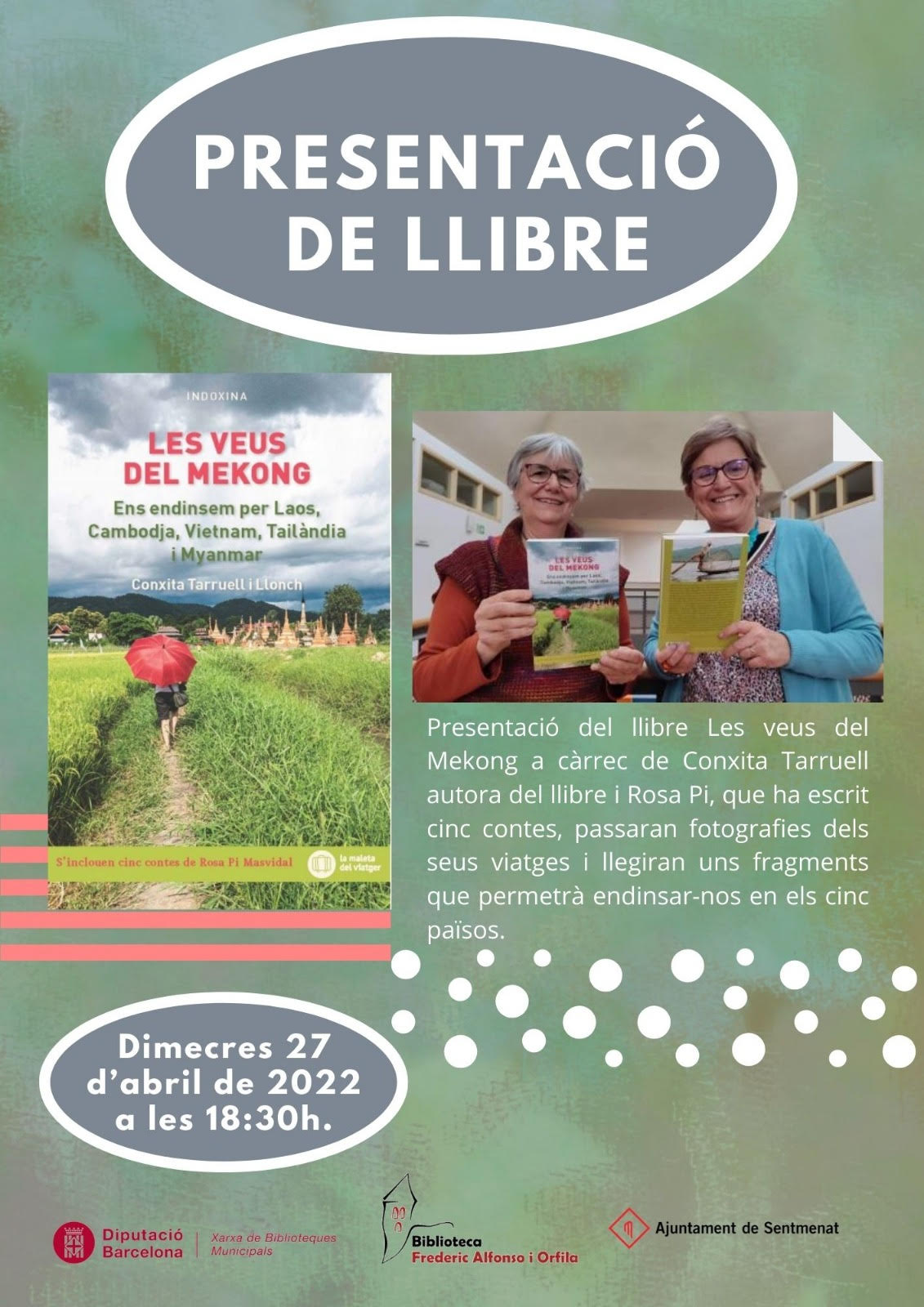 Conversem sobre Les veus del Mekong a Sentmenat 27 Abril 2022 conxitat Català, Myanmar, Viatge a Bangkok Thailandia, Viatge a Cambodja, Angkor, Viatge a Indoxina, Viatge a Laos, Viatge a Vietnam Deixa un comentari La xerrada sobre el llibre Les veus del Mekong a la Biblioteca de Sentmenat ha estat participativa. Hem compartit les experiències dels viatges per Indoxina que ens han enriquit. Comparteix això: Feu clic per compartir al Facebook (S'obre en una nova finestra) Facebook Feu clic per compartir a X (S'obre en una nova finestra) X M'agrada S'està carregant... Relacionats