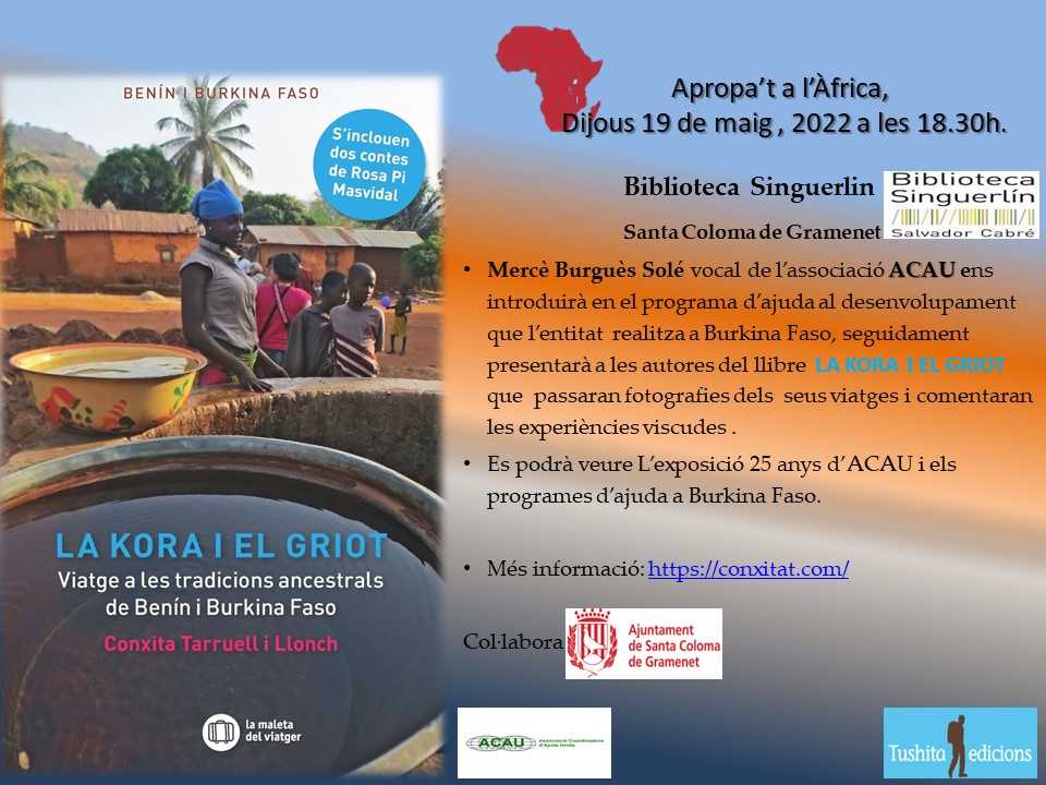 Ens hem apropat a Benín i a Burkina Faso per mitjà de l’Associació ACAU acompanyat d’una exposició dels seus projectes i del llibre LA KORA I EL GRIOT. La Mercè vocal de l’entitat ens ha parlat del que realitzen a Burkina Faso. Hi ha hagut un intercanvi d’experiències sobre aquestes terres africanes molt enriquidor.