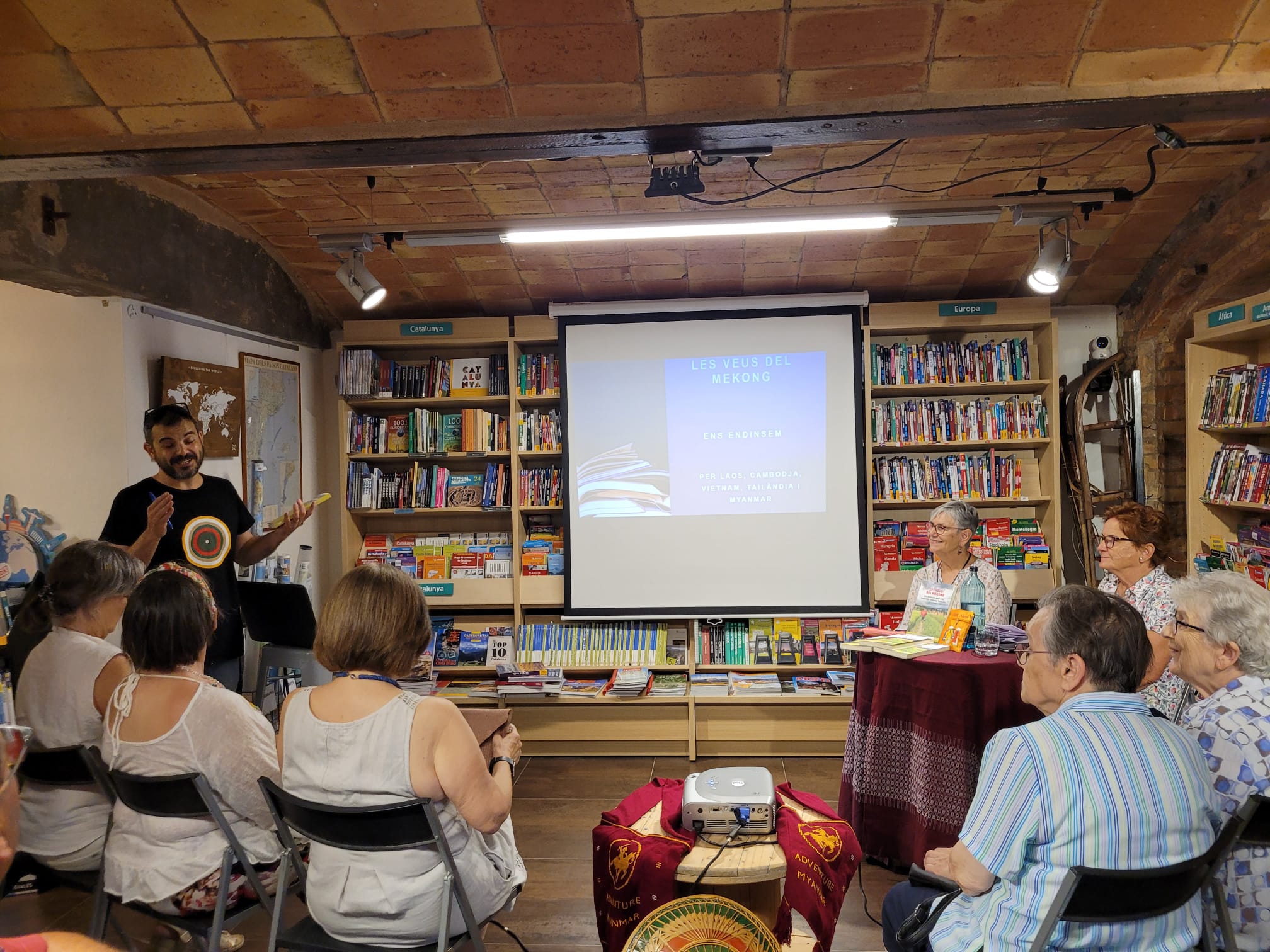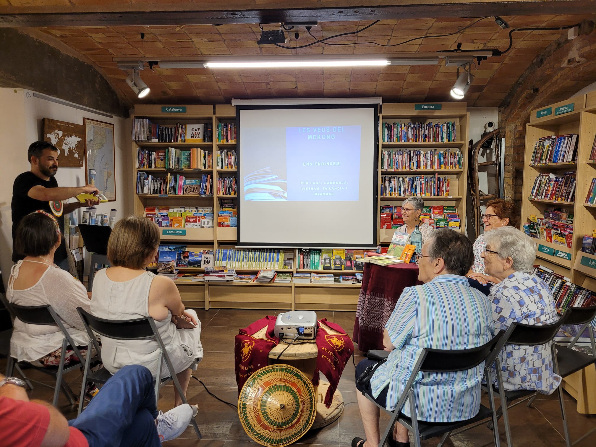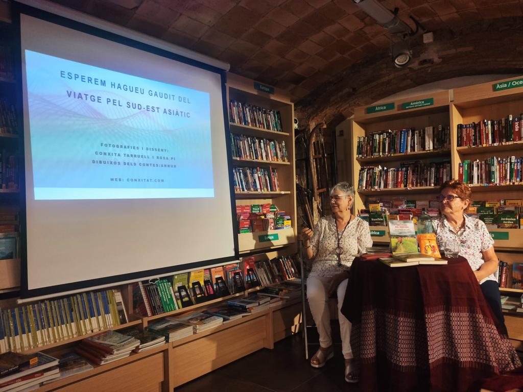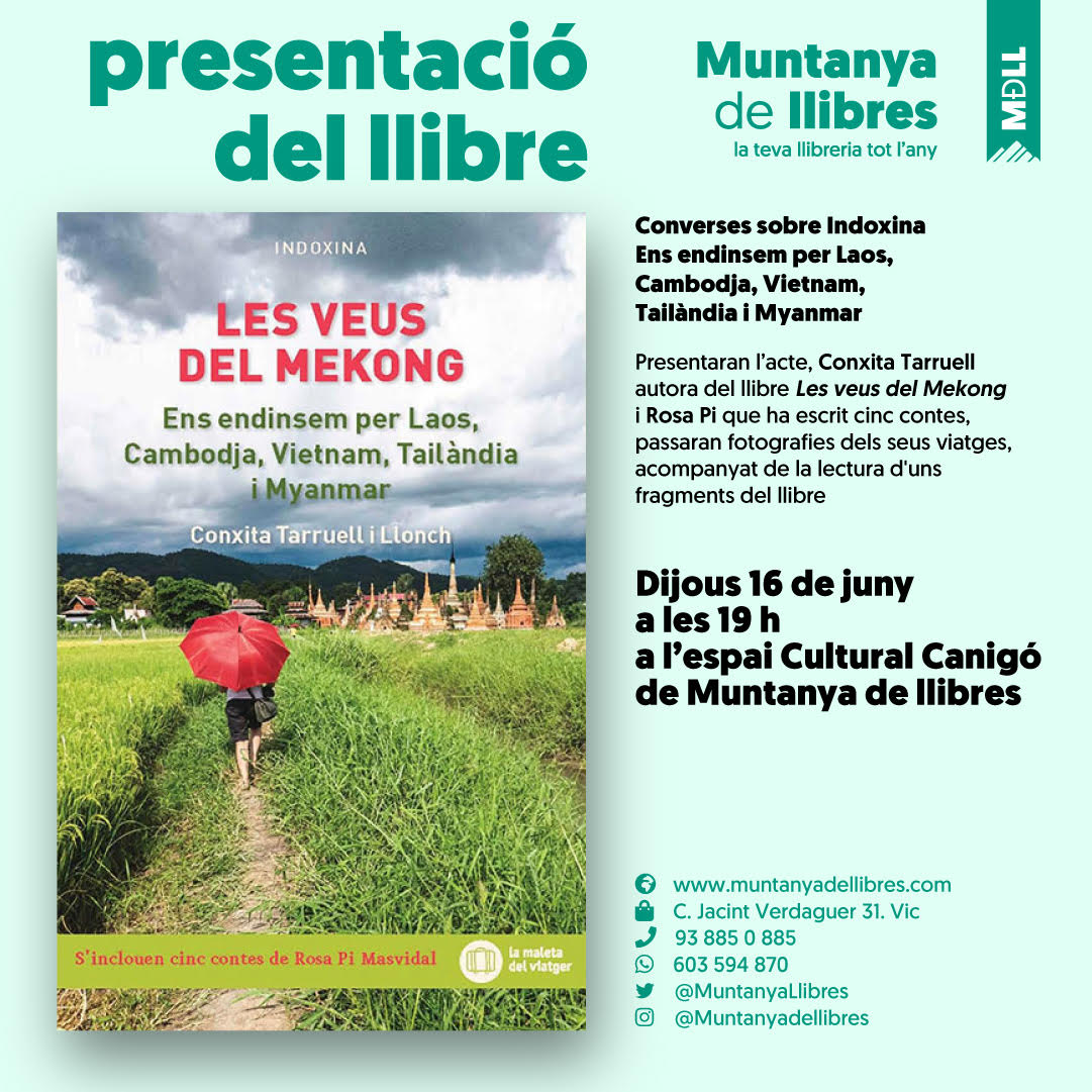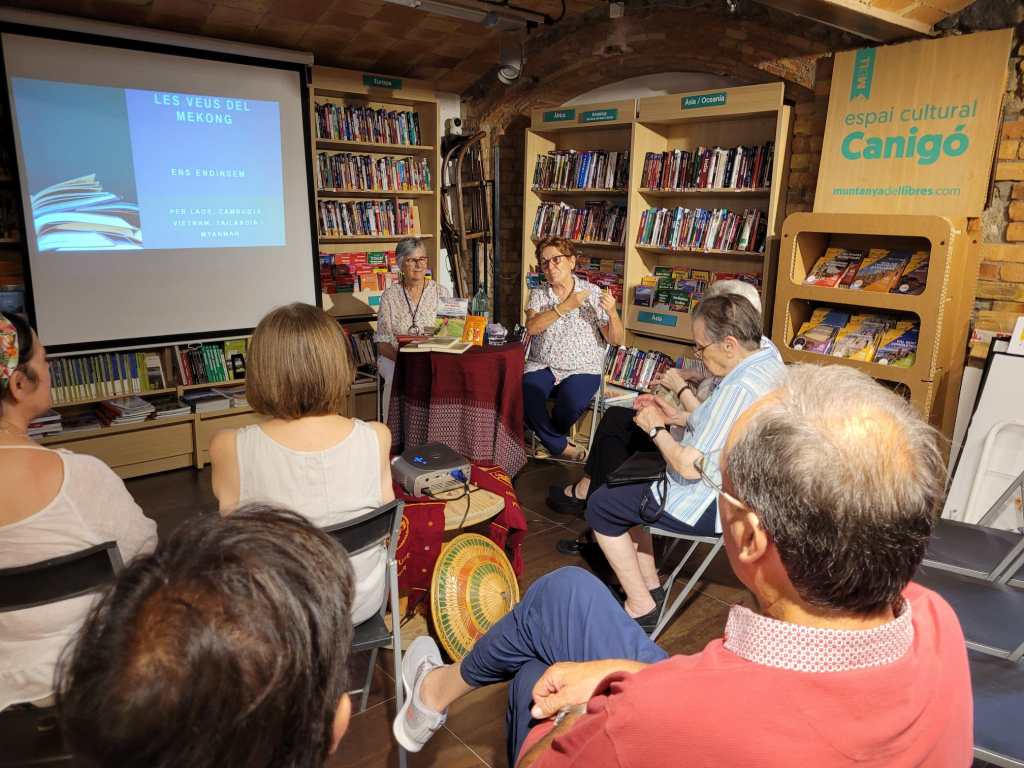 Ha introduït l’acte en Xevi Cortacans responsable de la llibreria. Ha estat un plaer compartir les nostres experiències d’Indoxina amb un públic molt agraït. Han participat amb interès i entusiasme a la xerrada sobre aquestes terres del Sud-est asiàtic. S’ha creat un clima acollidor a l’espai cultural Canigó de la llibreria Muntanya de llibres. Gràcies a tots els que ho heu fet possible!