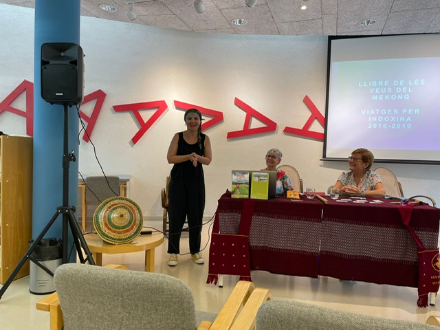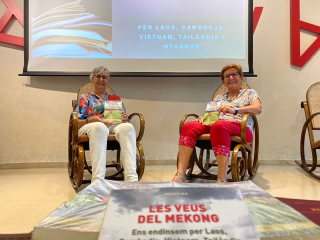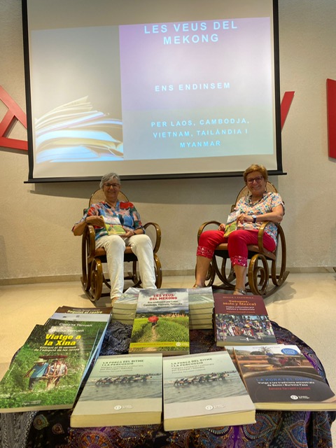 Ha introduït l’acte la Marta, directora de la Biblioteca. Mentre les autores han passat les imatges de la ruta pel Sud-est asiàtic, els assistents han intervingut amb preguntes i comentaris. S’ha creat un ambient acollidor. Gràcies a tots els que heu participat.