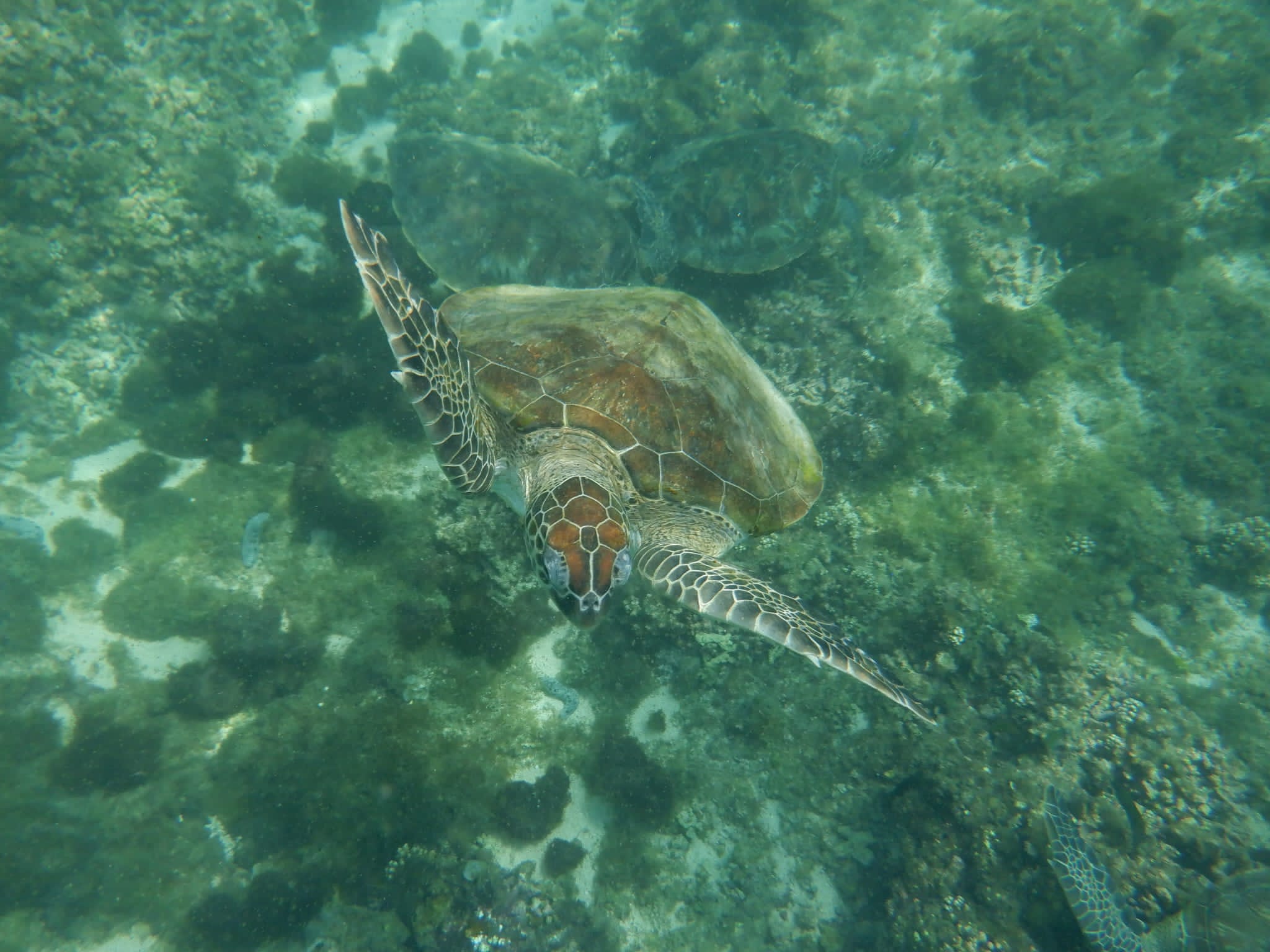 La variedad de peces, como el pez globo amarillo y negro y el pez payaso con rayas naranjas. En especial me gusta seguir a una tortuga que lleva encima un pez aguja.