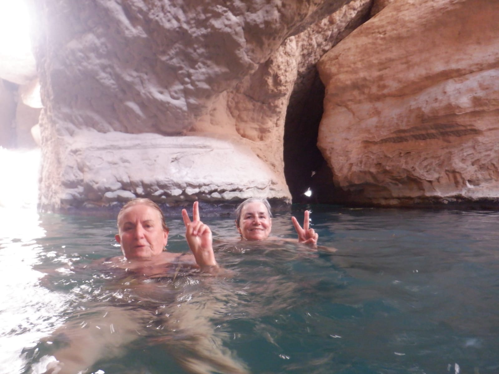 La experiencia de recorrer el río, nadar por las pozas Wadi Shaab y arriesgarnos por un paso estrecho hasta llegar a la cueva con un salto de agua.