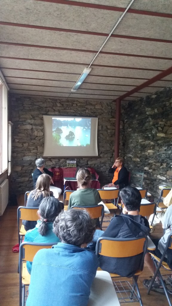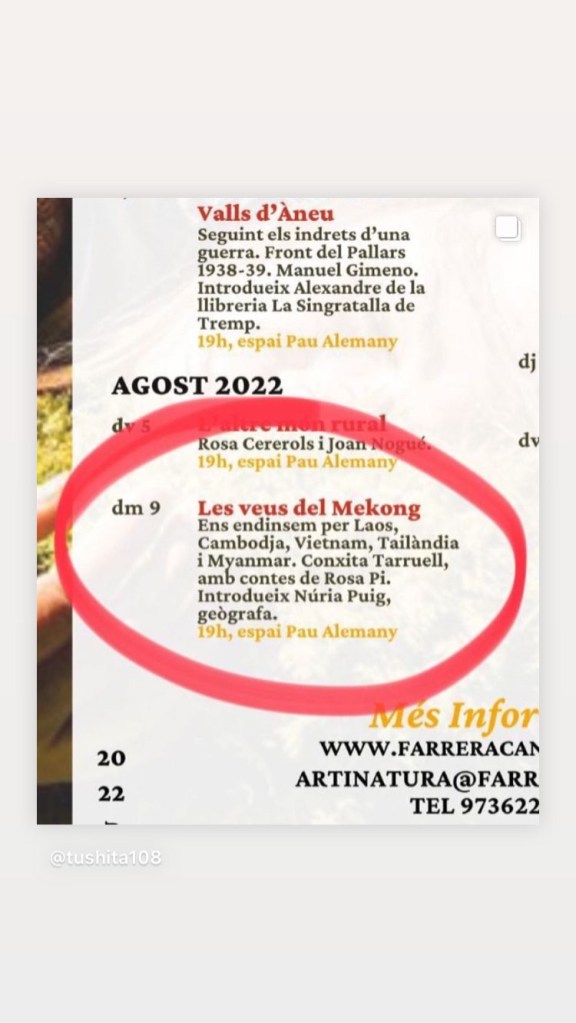 El Centre d’Art i Natura de Farrera ha estat per segon any consecutiu un espai important pel llibre Les veus del Mekong. Es va acabar d’escriure aquí l’estiu passat i enguany, 2022, s’ha presentat a un públic que s’ha interessat i ha fet preguntes sobre els països del sud-est asiàtic, que han explicat les autores a partir d’imatges. També s’ha escoltat un fragment d’Angkor i la pluja, un dels cinc contes que s’inclouen en el llibre. Moltes gràcies.