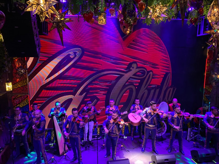 La Chula, un local de ocio de la zona más moderna y chic de la ciudad, decorado con elegancia. Aquí vemos un espectáculo de Mariachis, en un escenario situado delante de una pantalla gigante en la cual van saliendo imágenes de mándalas multicolor mientras actúan. El grupo lo integra una docena de músicos que tocan gran diversidad de instrumentos, más tres cantantes. Nos sentimos muy a gusto. Es un buen final de nuestra estancia en Bogotá.