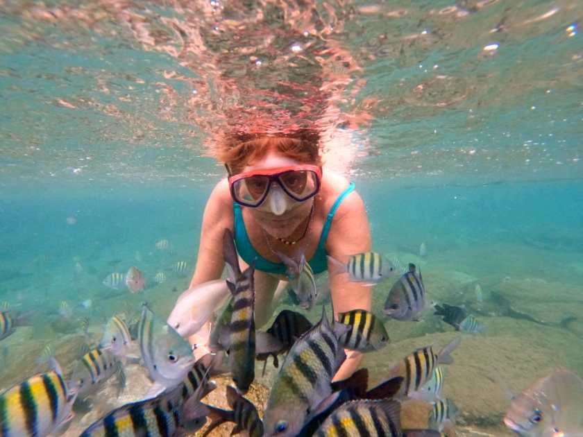 La sorpresa de ver una gran variedad de peces tropicales de todos los tamaños y colores, en la playa del Puerto donde practico snorkel.