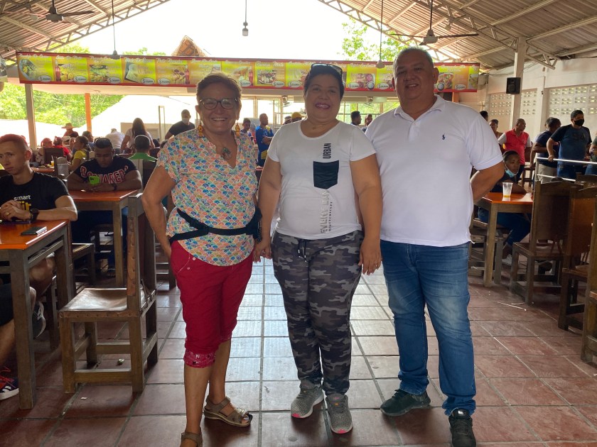 La ruta a San Basilio de Palenque, situado a setenta kilómetros de Cartagena. Nos detenemos a comer con Amauri y su mujer Elida Rosa, en el restaurante Los Chicharrones de Turbaco, un lugar muy popular.