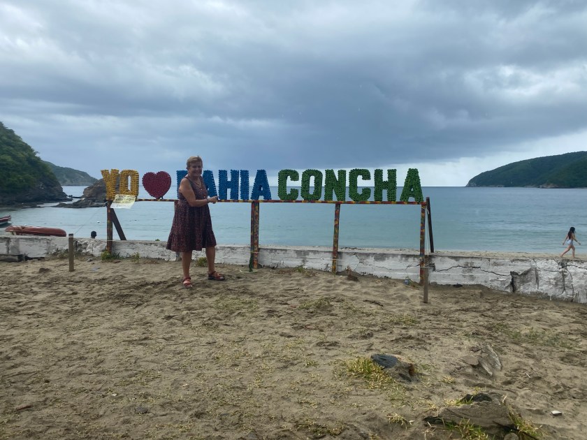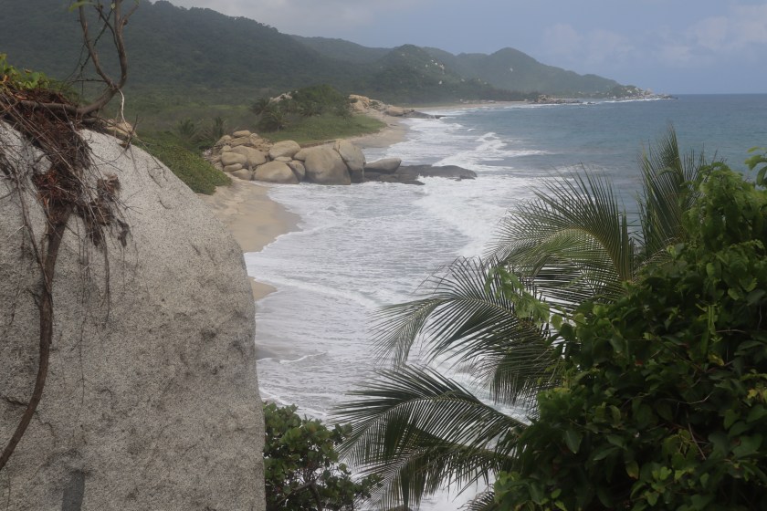 La experiencia de navegar en una pequeña lancha donde nos ubicamos más de veinte personas. El mar está agitado, pasamos momentos de angustia al ver las altas olas.  Quedamos empapadas de agua y tenemos miedo a que vuelque la barca. Por otro lado, nos compensa el hermoso paisaje de las montañas del Tayrona que llegan hasta el mar.