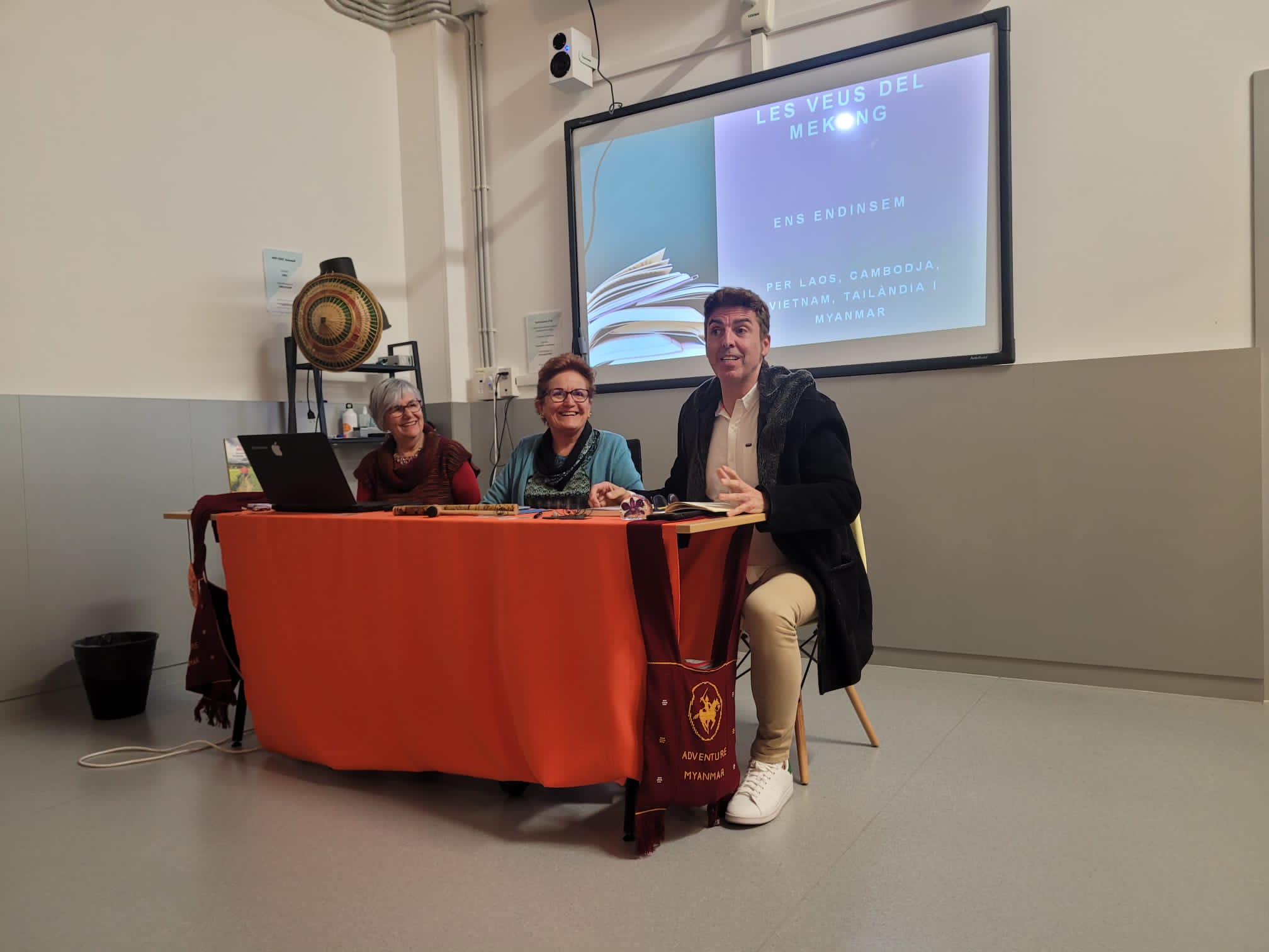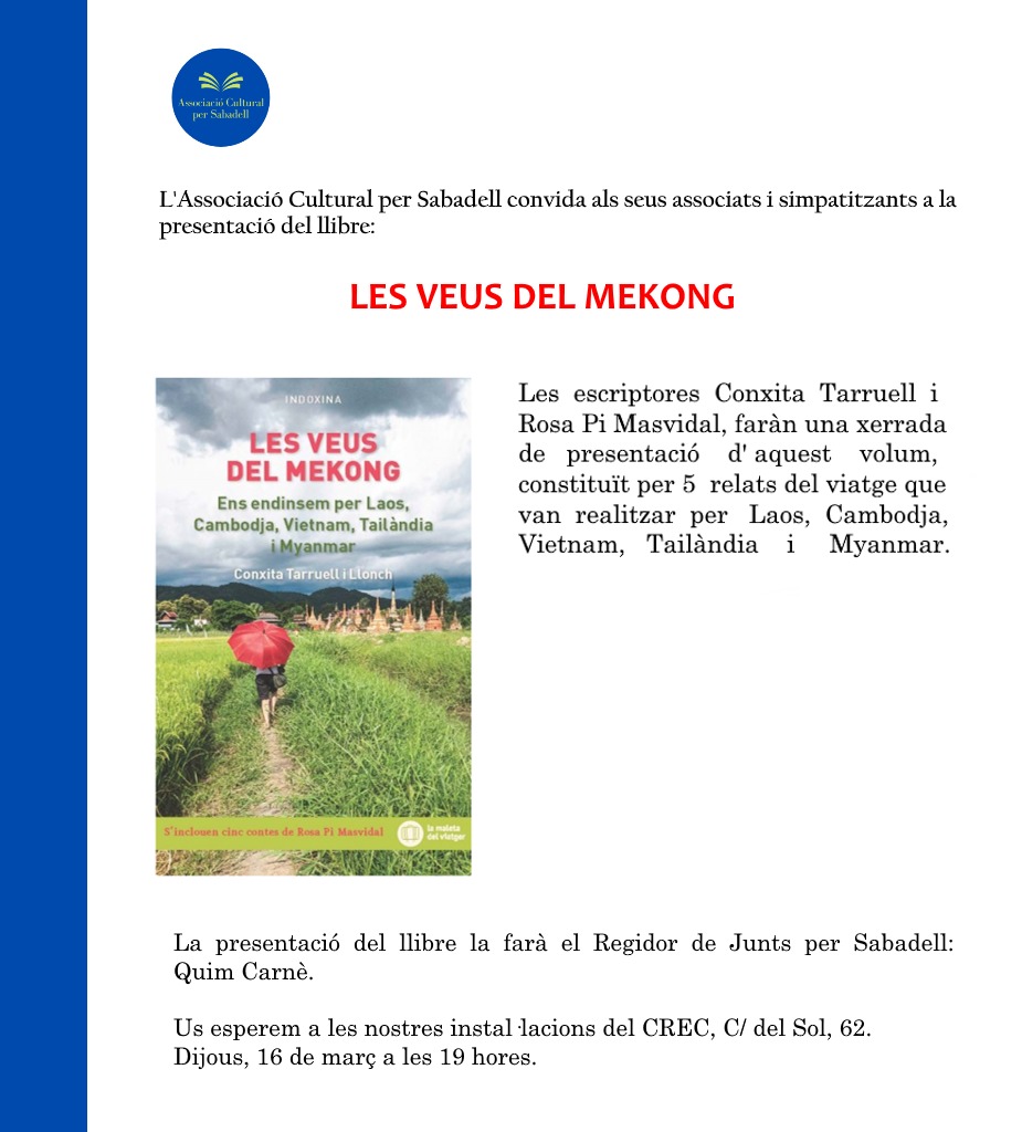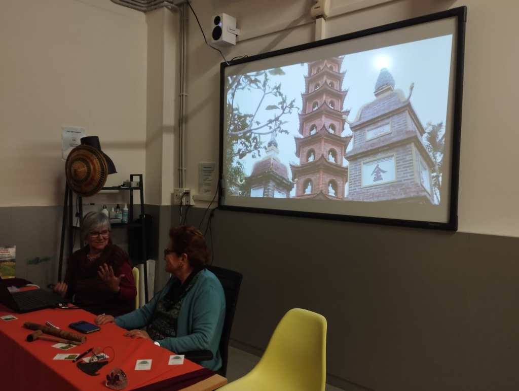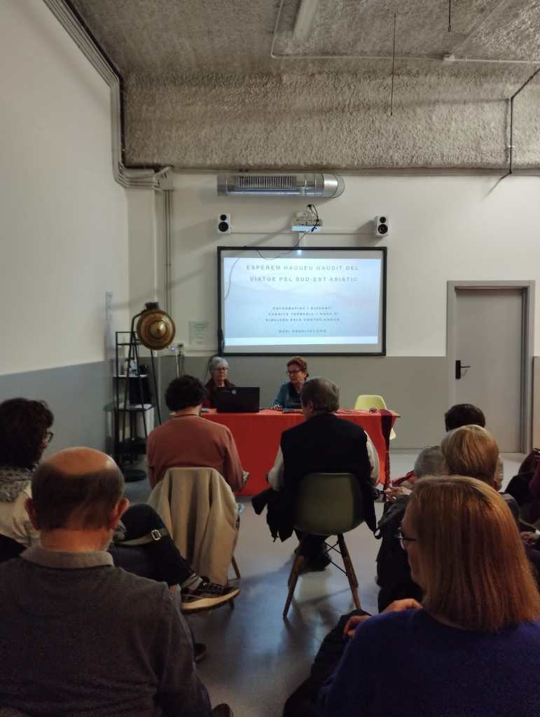 El Quim Carné ha presentat l’acte conversant amb les autores amb bona sintonia. El públic assistent ha seguit amb interès les explicacions acompanyades d’imatges d’Indoxina i s’hi han transportat. Agraïm a Junts la seva bona acollida.