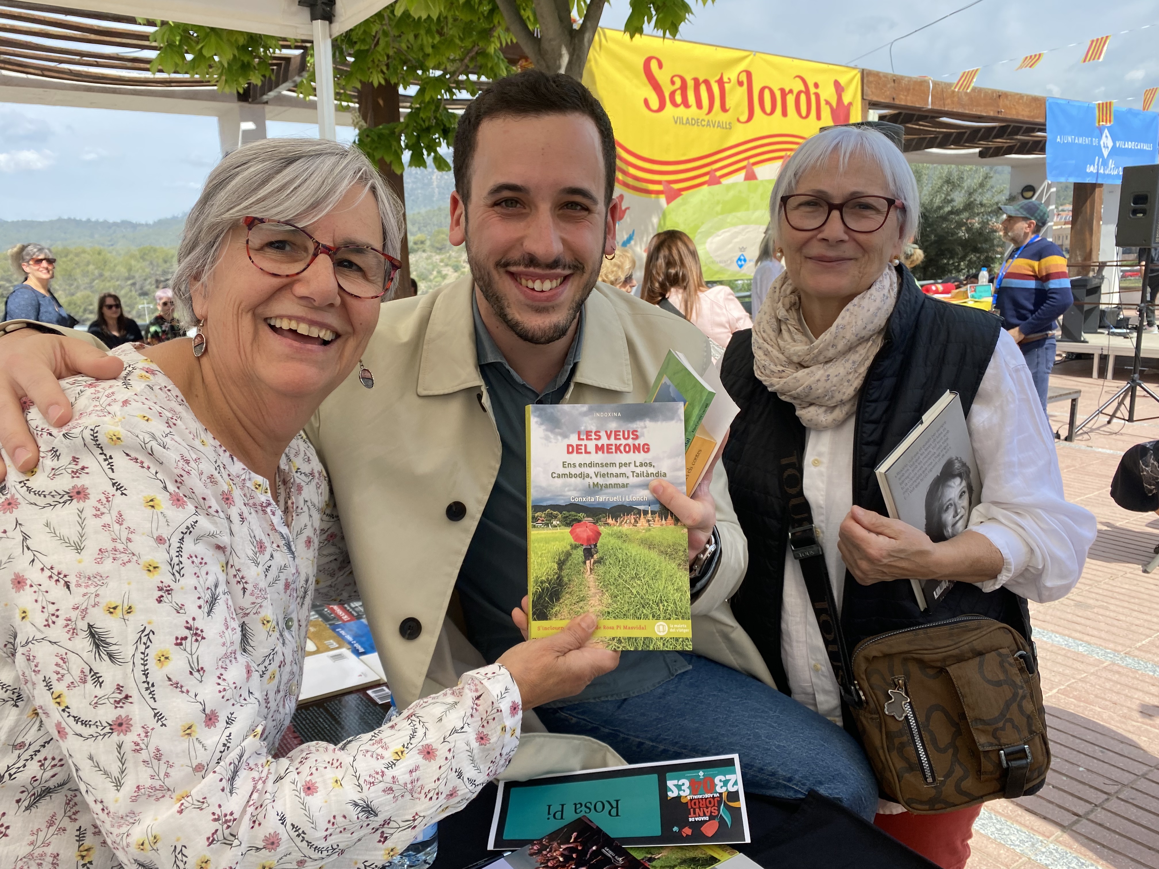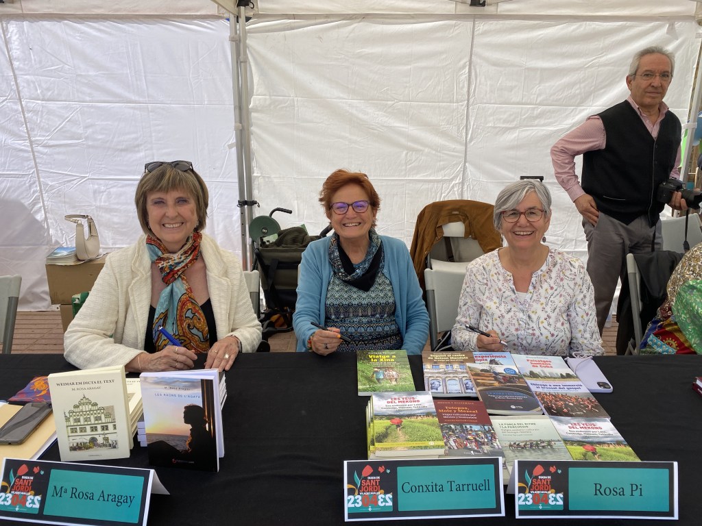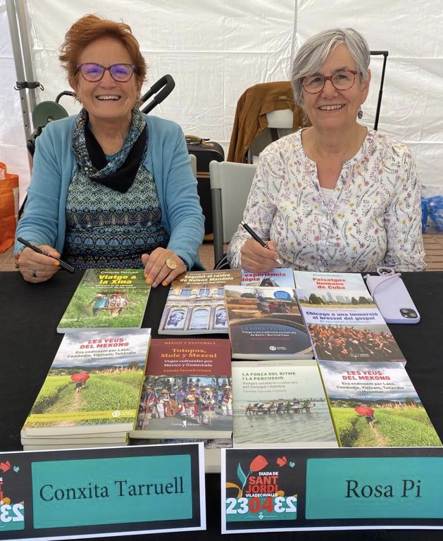 De bon matí hem anat al Palau de la Virreina a l’esmorzar de Sant Jordi, que sota el paraigua de Barcelona, Ciutat de la Literatura per la UNESCO, organitza l’Ajuntament, a través de l’ICUB. En sortir hem entrat a l’Ateneu Barcelonès per veure la cartellera de l’escola d’escriptura on hi ha els llibres publicats per l’alumnat del 22-23. Hem tingut la satisfacció de veure la coberta del nou llibre: Colòmbia i Mèxic, de la terra al cor. Tot seguit hem anat a Viladecavalls convidats per la biblioteca Pere Calders on hem signat els llibres, amb un ambient festiu. Al migdia hem participat en una tertúlia de Radio Sabadell dirigida per la Karen, amb autors que ja portem molts Sant Jordi presentant llibres. Hem estat acompanyades del David Vila i del José Antonio Bonilla i s’ha creat una bona empatia entre tots. A la tarda hem anat a signar junt amb l’Assumpta Codina a la parada de la Fundació SID Moskitia en un lloc ben situat i concorregut. Estem d’aquesta diada tan plena en que el bon temps ens ha acompanyat.