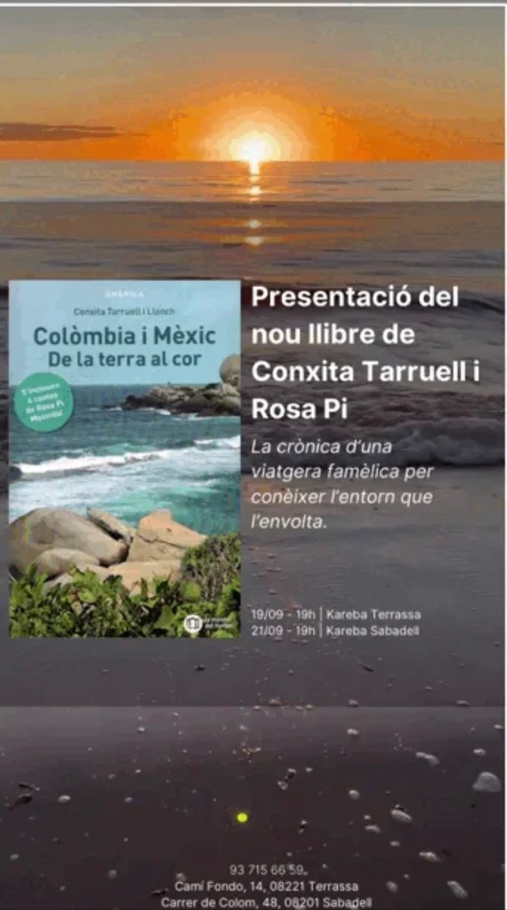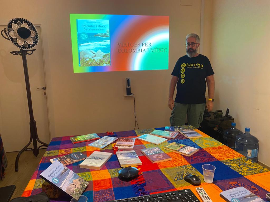Ens han convidat els responsables de Kareba viatges de Sabadell, amb qui vam preparar la ruta a Colòmbia. Hem fet una tertúlia sobre el llibre: Colòmbia i Mèxic. De la terra al cor. El Carles de Kareba, ha introduït la trobada. Hem llegit fragments del Temazcalli i del conte “Un volcà en erupció. S’han passat fotografies d’aquests països. S’ha creat un bon ambient de diàleg entre els assistents, mentre hem compartit experiències viatgeres.