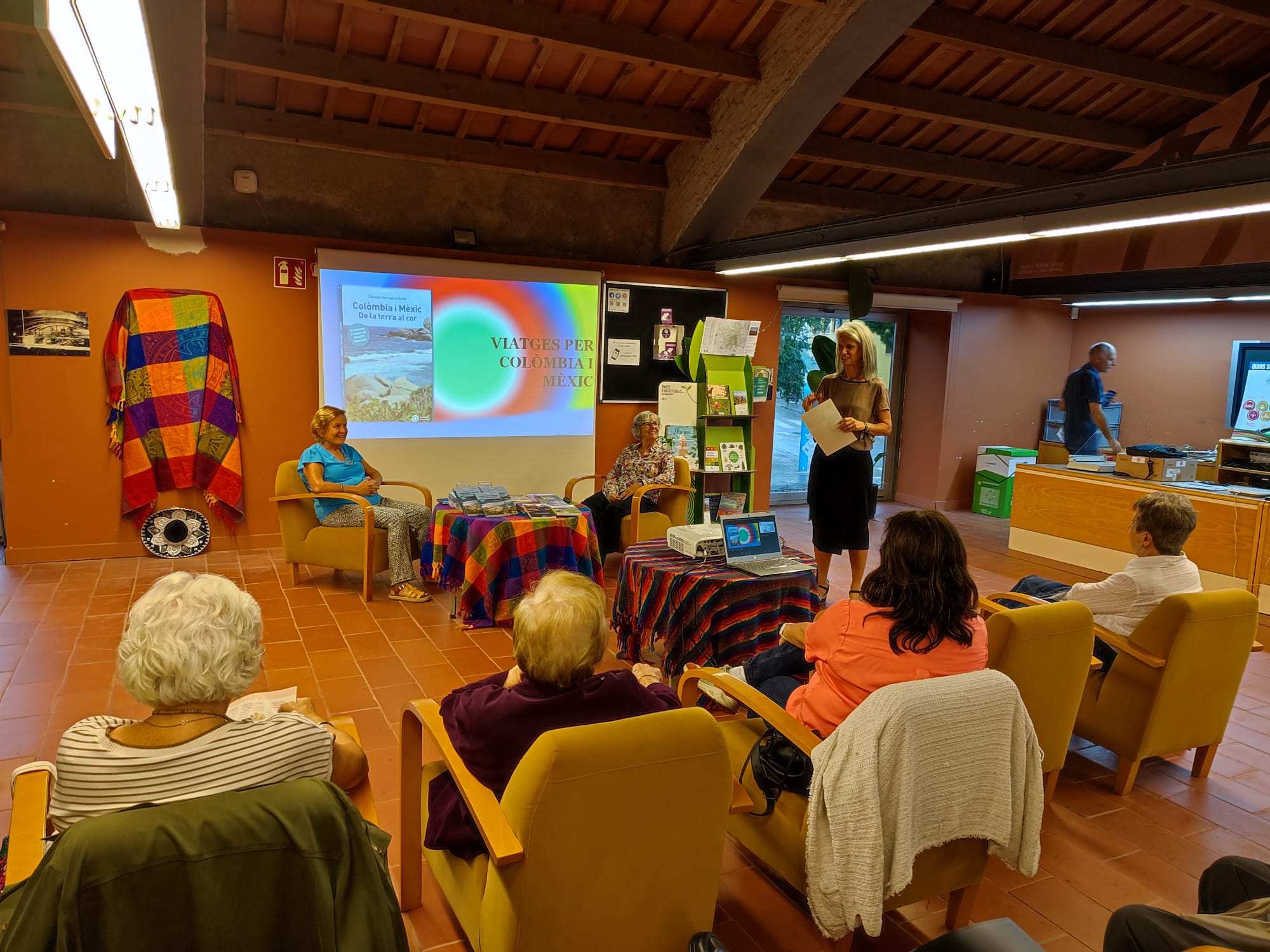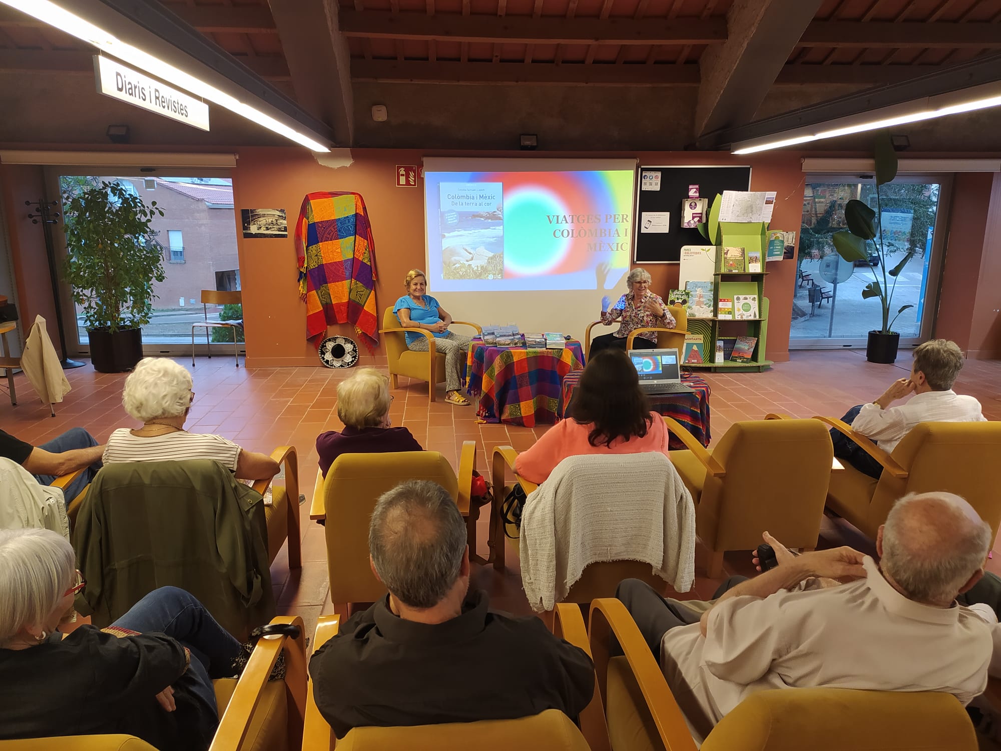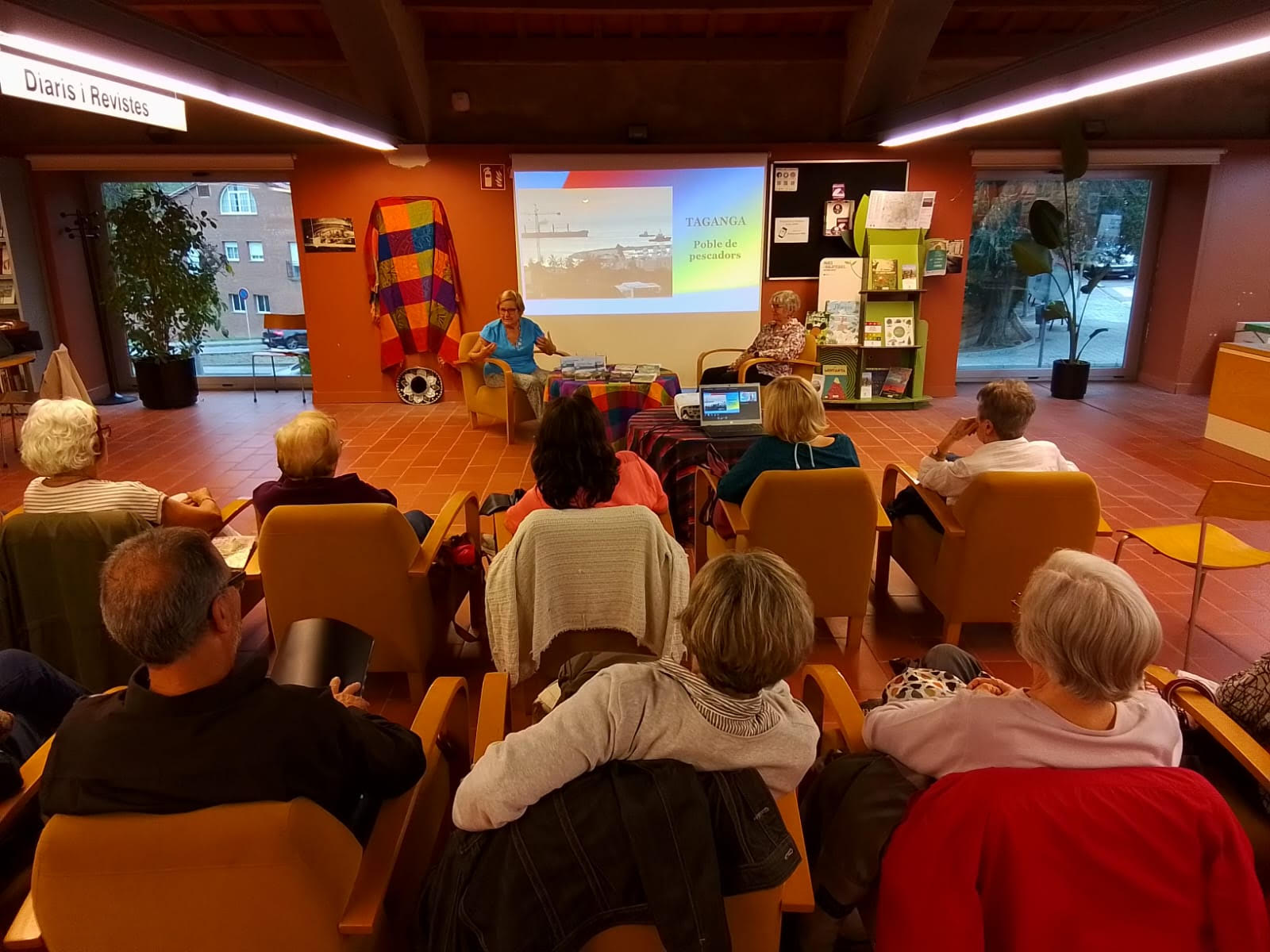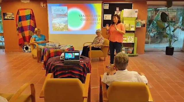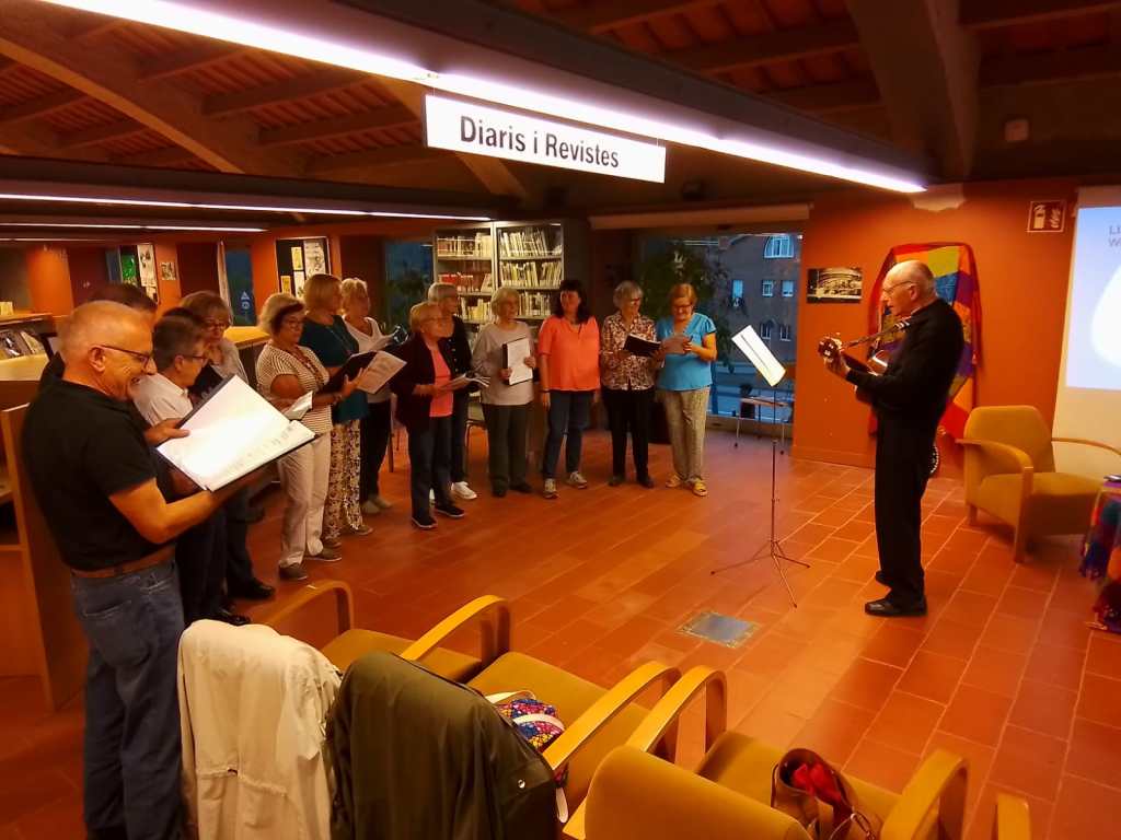Ha introduït l’acte l’Ester de la biblioteca. La Mati ha presentat a les autores, que han explicat les vivències acompanyades d’imatges d’aquests viatges. Hem acabat cantant amb Les Veus de les Carenes, amb un ambient festiu.