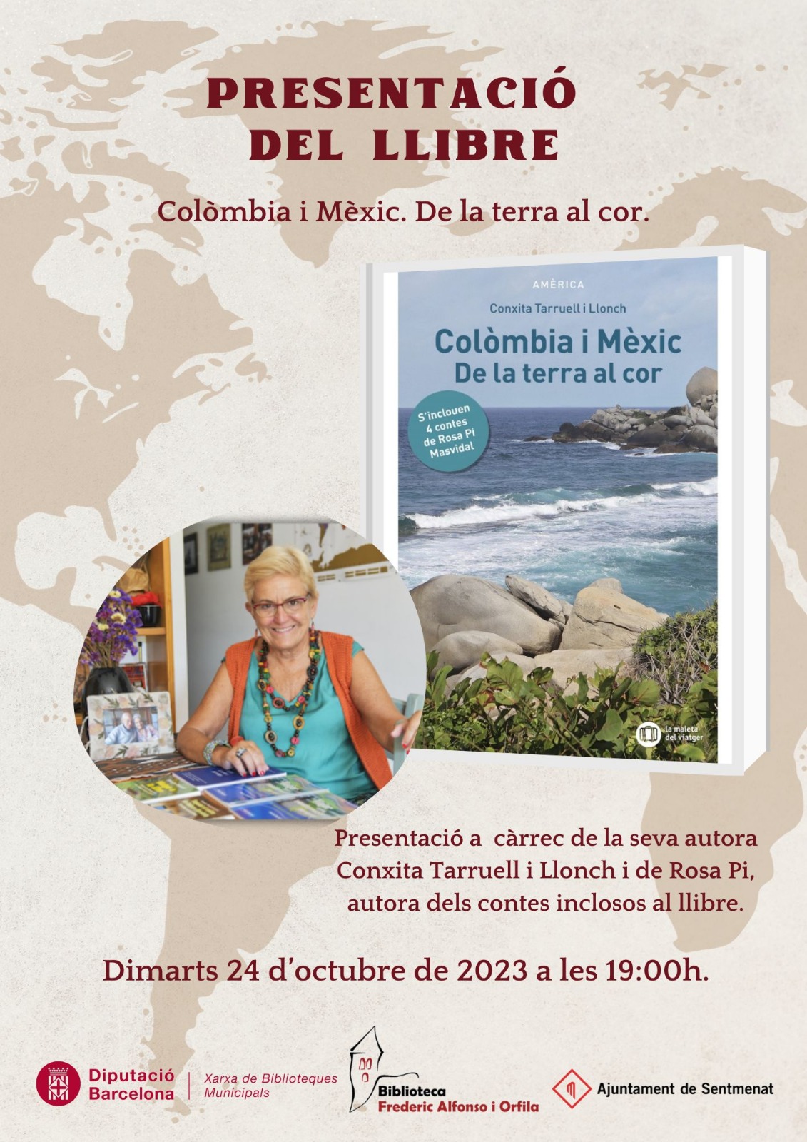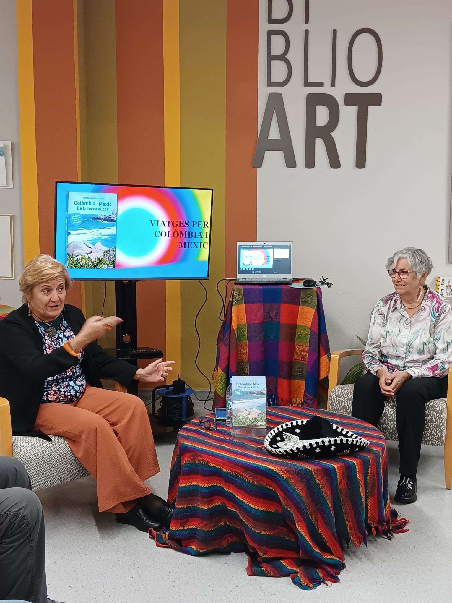 Hem tornat a Sentmenat i com sempre ens hem sentit molt ben acollides. La Núria, directora de la Biblioteca, ens ha presentat. S’ha creat un bon ambient amb el públic que ha participat a la xerrada sobre Colòmbia i Mèxic. Agraïm la participació dels assistents en aquest espai tant entranyable.