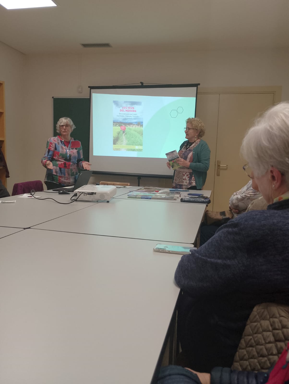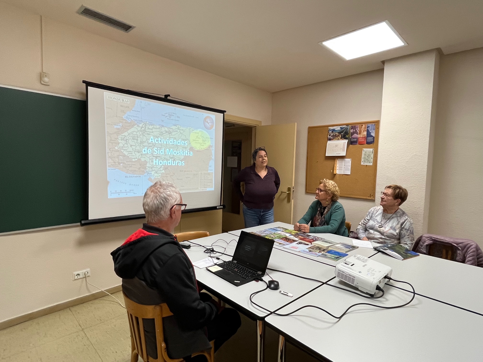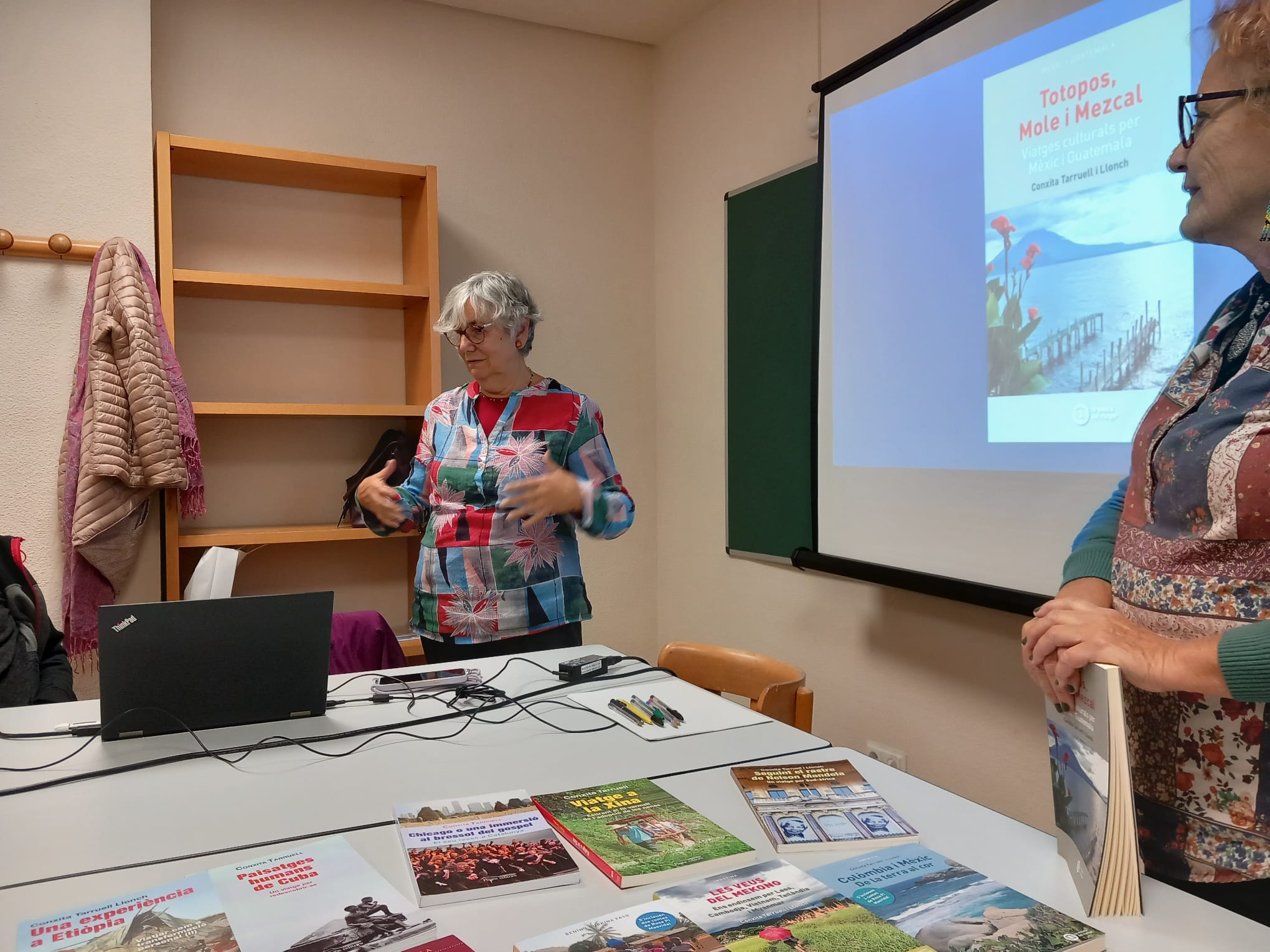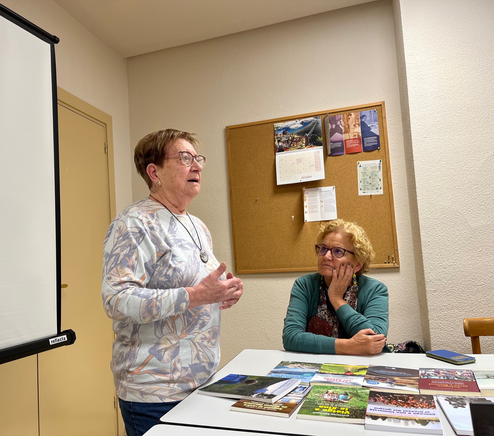 Ha iniciat l’acte la Gabriela, responsable del centre cívic, a continuació el cooperant Josep Aguilà ens ha parlat de la seva tasca a Hondures durant més de trenta anys. Ha estat molt enriquidor. Tot seguit l’Assumpta Codina ens ha explicat les seves experiències a Xile que surten reflectides en el seu llibre autobiogràfic. En acabar la Conxita i la Rosa han fet un recorregut de tot el procés de l’escriptura a través dels viatges i els contes ambientats en aquests països.