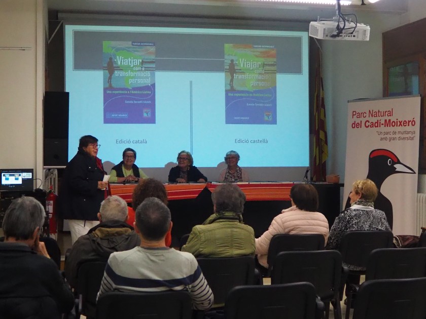 Ens hem trobat al Centre d’interpretació Cadí Moixeró de Bagà per fer la xerrada. Ha iniciat acte l’Àngels Renom que ha presentat les autores dels llibres. L’Assumpta ha explicat el seu llibre on hi surt Bagà i les seves experiències de l’estada de tres anys a Xile. La Conxita ha exposat a través del relat personal les vivències amb la gent del país que connecta el viatge amb el seu interior, que l’empodera i la transforma. La Rosa ha parlat de com escriu els viatges a través dels contes amb els valors d’amistat, respecte a la natura i l’educació.