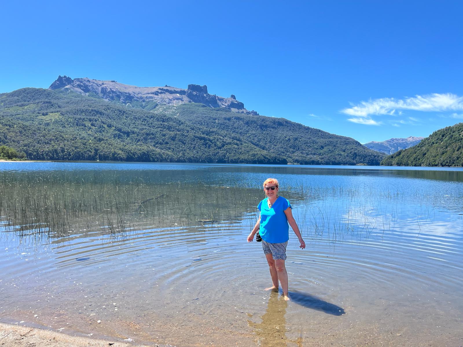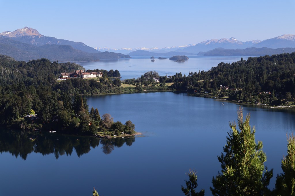 La capital dels Lagos del Sur, envoltada de muntanyes imponents i de boscos mil·lenaris a la vora del llac Nahuel Huapi, d’origen glacial.La trobada amb els meus parents argentins, passejant amb en Jorge i la Blanca pels carrers plens de gent fins a la plaça del Centre Cívic. Mullar-me els peus al llac amb la Blanca i experimentar la frescor de l’aigua.