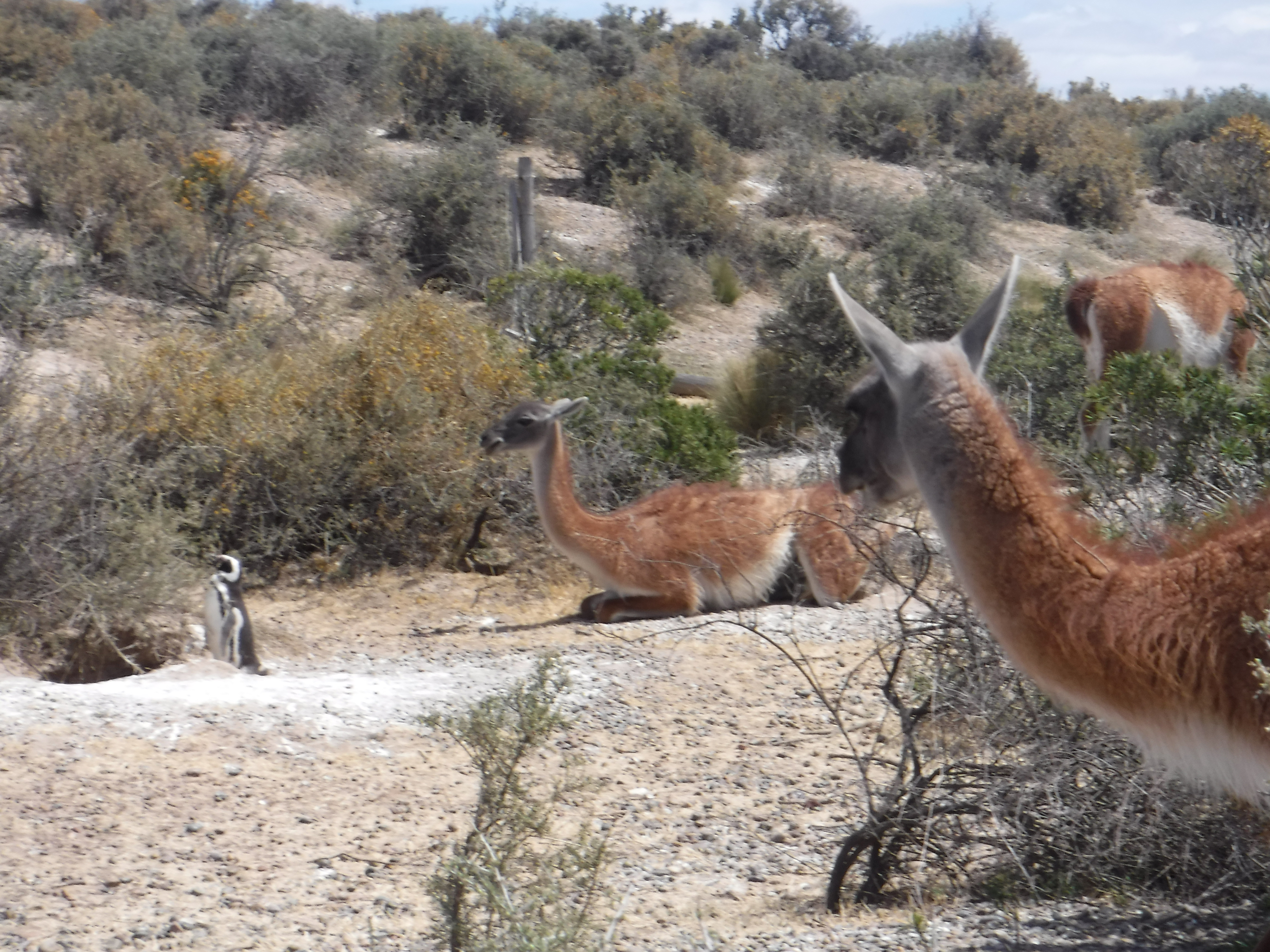Els guanacs, de la família de les llames i els camells. Pesen uns setanta quilos i els seus depredadors són els pumes. Veiem de prop com conviuen amb els pingüins tranquil·lament. M’ha agradat conèixer aquests animals en el seu hàbitat.