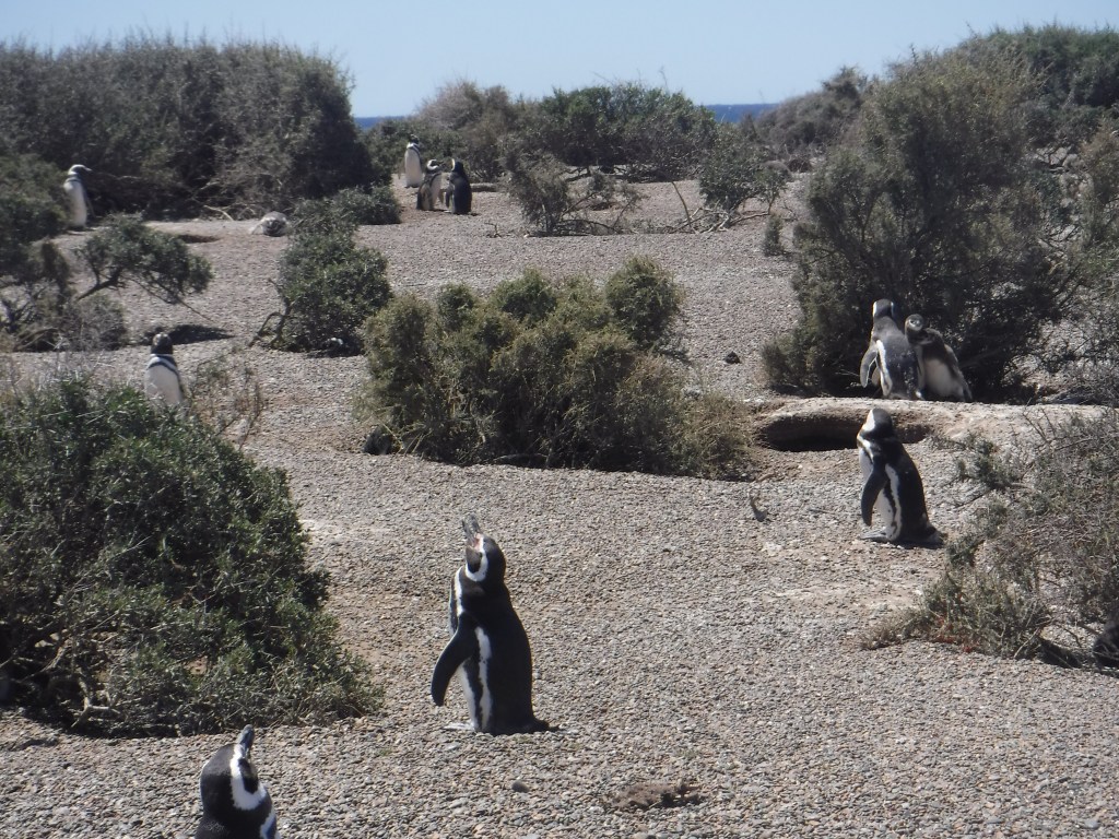 Els pingüins de Magallanes, quan passejo en el seu propi hàbitat a través del camí marcat. Són afectuosos entre ells, els pares acaricien les cries, que encara no tenen plomes al cos. Alguns tenen la boca oberta per agafar aire i poder aguantar la calor. M’han encantat i n’he gaudit plenament enmig de la natura verge.