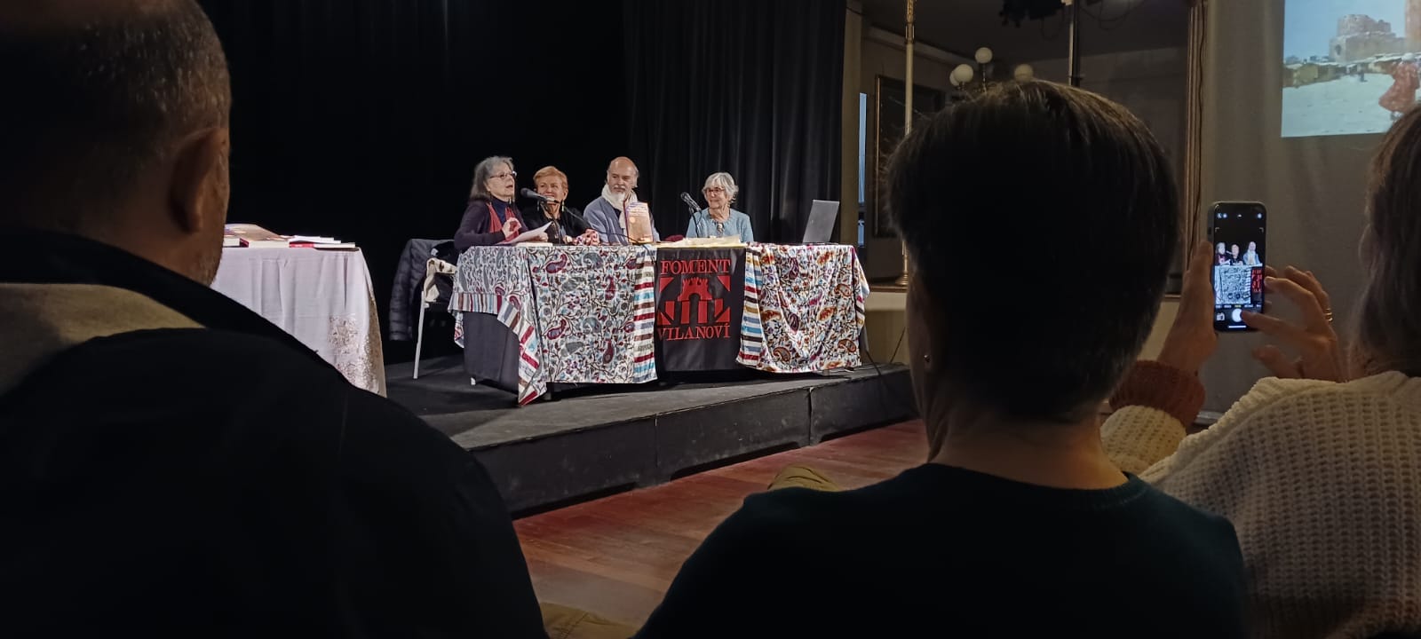 El divendres 26 d’abril ens vàrem reunir al Foment vilanoví amb  una gran diversitat de públic. L’escriptora local Teresa Costa-Gramunt, autora del pròleg va obrir l’acte i va parlar del sentit dels viatges.  Les autores van explicar el procés del llibre acompanyat d’imatges, mentre el Joan Ferré, autor de l’epíleg anava llegint fragments del llibre i dels contes. Al finalitzar es van signar llibres, brindarem amb cava i una colla ens vam quedar a sopar on es va crear un bon caliu. Vam gaudir d’un acte entranyable.