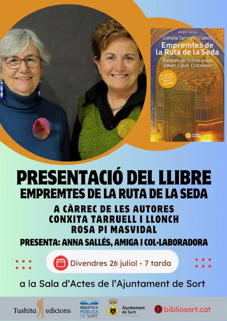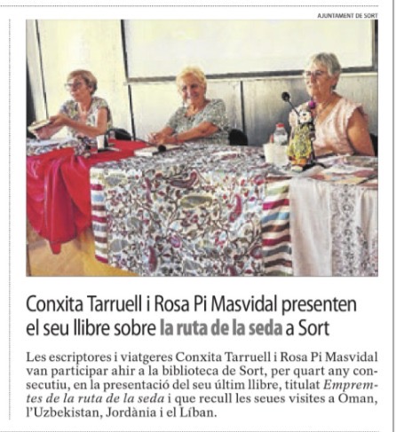 S’ha convertit en una tradició estiuenca rebre a la sala d’actes de l’Ajuntament de Sort les escriptores i viatgeres Conxita Tarruell i Llonch i Rosa Pi Masvidal, que per quart any consecutiu han presentat el seu darrer llibre, Empremtes de la Ruta de la Seda, i han representat també el conte infantil Un amic a l’Àfrica, tots dos publicats per Tushita Edicions.