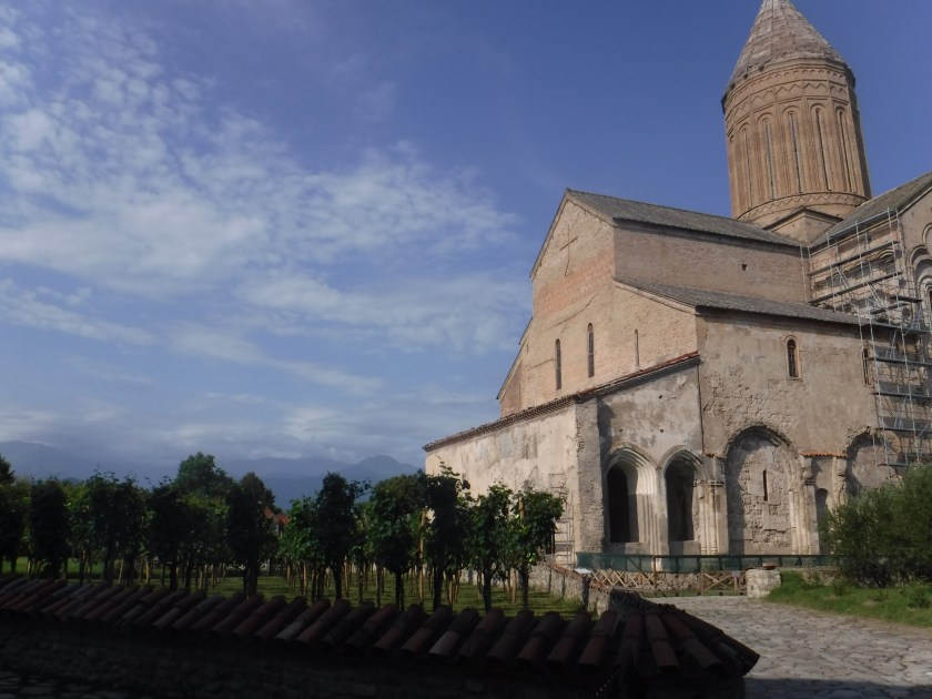 La catedral un exemple de l’arquitectura medieval georgiana, que ha estat destruïda i reconstruïda nombroses vegades, fet que en reflecteix la resiliència i importància històrica. El monestir, on encara viuen monjos, està rodejat de vinyes que enllacen amb la llarga tradició vinícola de la regió de Kakhètia, famosa pels seus vins excel·lents.