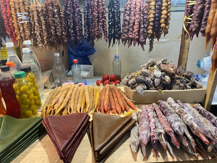 La ciutat principal de la regió oriental de Kakhètia, on visitem el bulliciós mercat local, en què els habitants de la zona fan les seves compres diàries.Em crida l’atenció la churchkhela, un dolç típic que sembla un fuet, i uns triangles de colors anomenats tklapi, sucs de fruita deshidratats.
