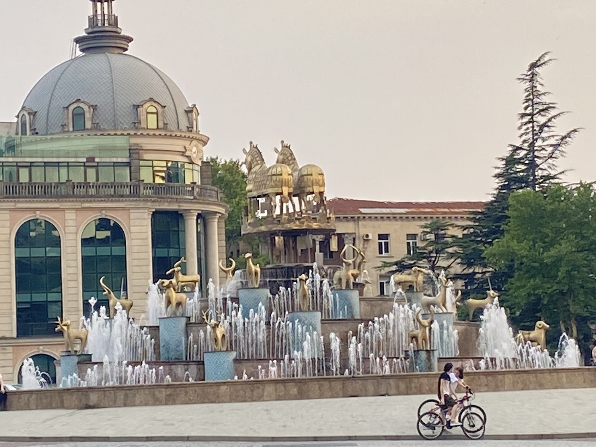 L’antiga fortalesa de Narikala, a la qual arribem en telefèric, que ens ofereix una vista espectacular de la ciutat. Allà, contemplem l’escultura de la Madre de Kartli, que amb la mà dreta sosté una espasa per defensar la ciutat dels invasors i amb l’esquerra una copa de vi com a símbol de benvinguda.