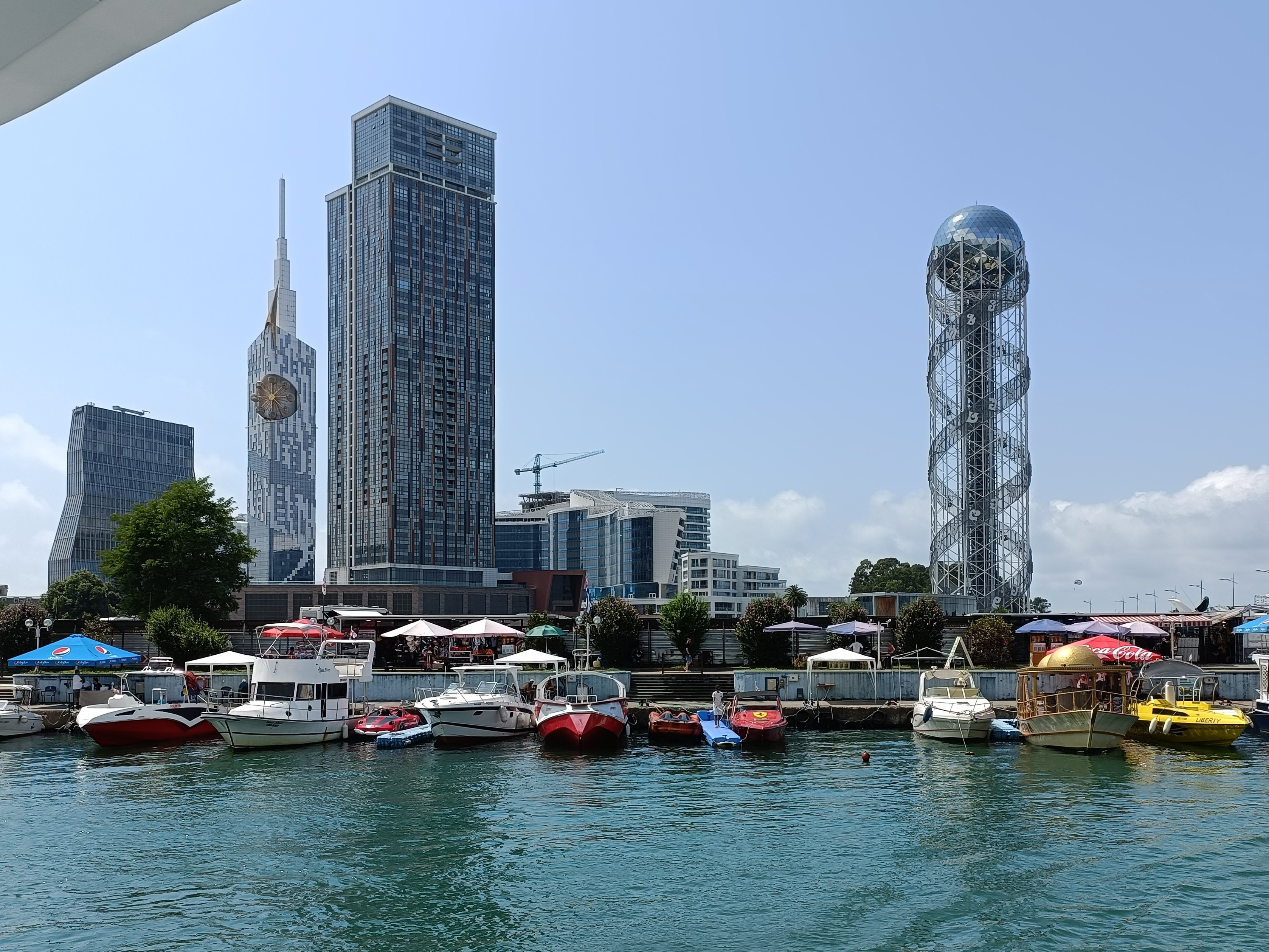 Navegar en vaixell al voltant de la costa de Batumi, amb música georgiana de fons i la brisa marina que em relaxa mentre contemplo la ciutat des del mar.