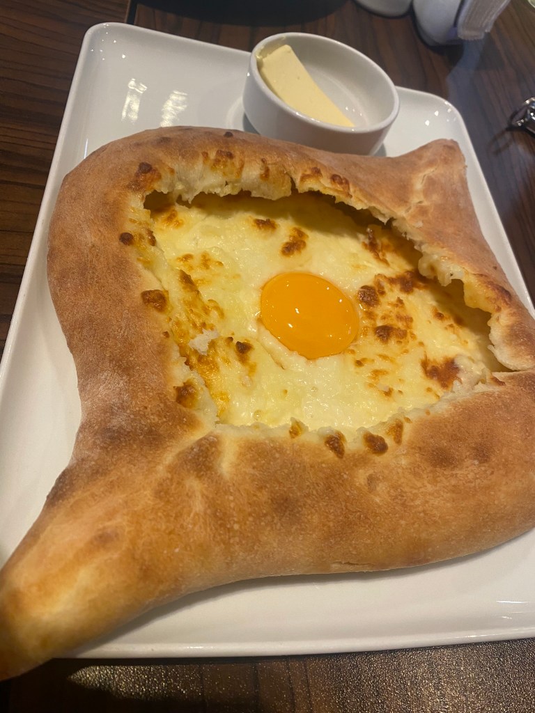 El Khachapuri, un pa farcit de formatge calent que se serveix sovint amb un ou al mig. Aquesta especialitat és un veritable plaer per als amants del formatge.