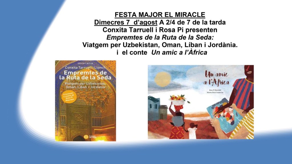 El dimecres 7 d’agost a la tarda, hem viscut una trobada literària plena de màgia i emoció al Miracle. Ens hem reunit per compartir les vivències dels nostres viatges a l’Orient Mitjà, transportant-nos a terres llunyanes a través de les pàgines del llibre “Empremtes de la Ruta de la Seda” i les històries del conte de Gàmbia. La bellesa de les imatges que els han acompanyat, han creat un ambient càlid i acollidor entre tots els assistents. La tarda ha esdevingut un espai d’inspiració i connexió, una pausa en el temps on cada història ha esdevingut un pont entre cultures i èpoques. En acabar, els monjos han ofert un refrigeri, afegint un toc final de germanor i gratitud a una jornada inoblidable.