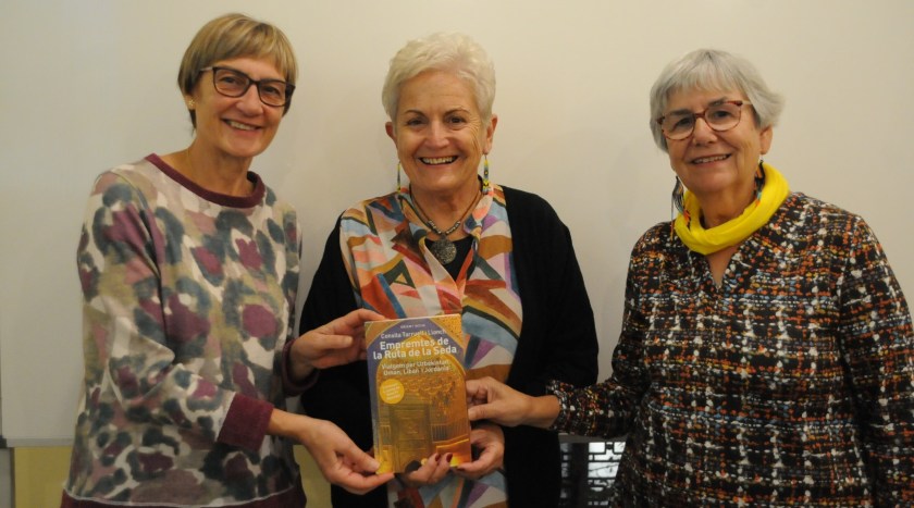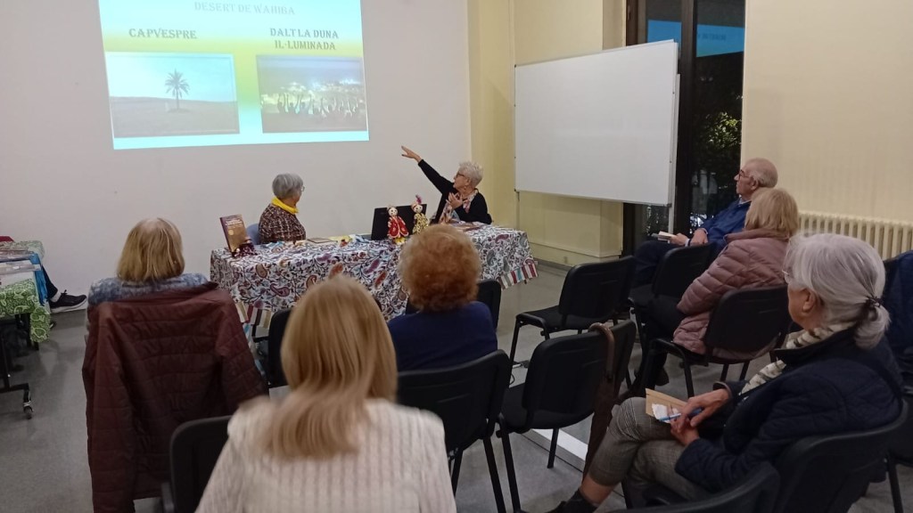 Avui hem tingut el plaer de participar a la presentació del llibre Empremtes de la Ruta de la Seda al Casal Pere Quart. Aquest és el dotzè llibre de la Conxita Tarruell, una obra que inclou quatre contes de la Rosa Pi, companya inseparable en viatges i aventures literàries. La complicitat entre elles és evident, i un cop més, han creat un tàndem que ens han fet gaudir de la seva col·laboració i de les vivències que comparteixen. La presentació, conduïda per l’Antoni Llorca, ha estat càlida i plena d’anècdotes que ens han fet somriure i que, a la vegada, desperten la curiositat per llegir el llibre. També hem comptat amb la presència de l’Esteve Barnola, gran fotògraf, qui ha estat capturant cada moment d’aquesta trobada deixant un testimoni visual ple de vida i emoció. Els que ja coneixem els llibres de la Conxita sabem que ella escriu des d’una òptica de creixement i transformació personal. Ens parla de la seva experiència, de les emocions i dels sentiments que li han inspirat els seus viatges. La Rosa ens explica que els seus contes sorgeixen dels llocs i de les persones que coneix en cada viatge. Per a ella, la gent i la cultura de cada país són una font d’inspiració. En la seva escriptura, es barreja la realitat amb la ficció, per això busca personatges i els fa passar aventures, tot explicant-nos com és el país. La Conxita, per la seva banda, comparteix que viatjar li ha portat a conèixer molta gent interessant. Com ella diu sempre, les persones són el més important El fet d’ escriure i compartir aquests llibres de viatges la fa feliç.
