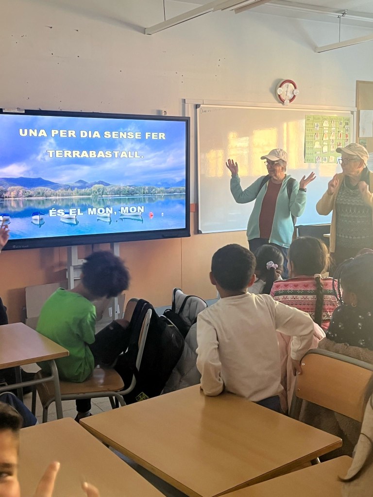 El dimecres 26 de març hem explicat i representat el conte de la Rosa Pi: El Nahuelito als infants del Casal del Raval de Santa Coloma de Gramenet. Aquest conte està inclòs en el llibre de la Conxita, De Tierra del Fuego a les aigües de l’Iguazú. Ens hem endinsat en la màgia del conte amb una representació plena de música, emoció i fantasia. hem començat explicant el relat acompanyat d’onomatopeies, cançons i gestos que han donat vida als personatges i als paisatges de l’Argentina, transportant-nos fins al llac Nahuel Huapi. Els infants, captivats pel relat, han descobert la barca, el volcà, la llegenda del misteriós monstre Nahuelito, la sensació de nedar a les aigües del llac i l’aventura de caminar pel bosc d’arrayanes. La granota, amb la seva saviesa, els ha ensenyat a superar les pors, i ells, entusiasmats, han interpretat amb gestos les emocions del conte. L’energia s’ha desbordat quan hem cantat i ballat tots junts, omplint la sala de rialles i complicitat. Després, ens hem traslladat a la sala d’actes, on els infants, amb llapis de colors i molta creativitat, han plasmat en dibuixos tot allò que més els ha impressionat. Aquest acte, que forma part del projecte de l’AELC, ens recorda la importància de portar la llengua catalana als infants d’una manera divertida i participativa, unificant cultura, llengua i educació. Ha estat una experiència màgica, un viatge compartit que ens ha permès jugar, aprendre i emocionar-nos junts.
