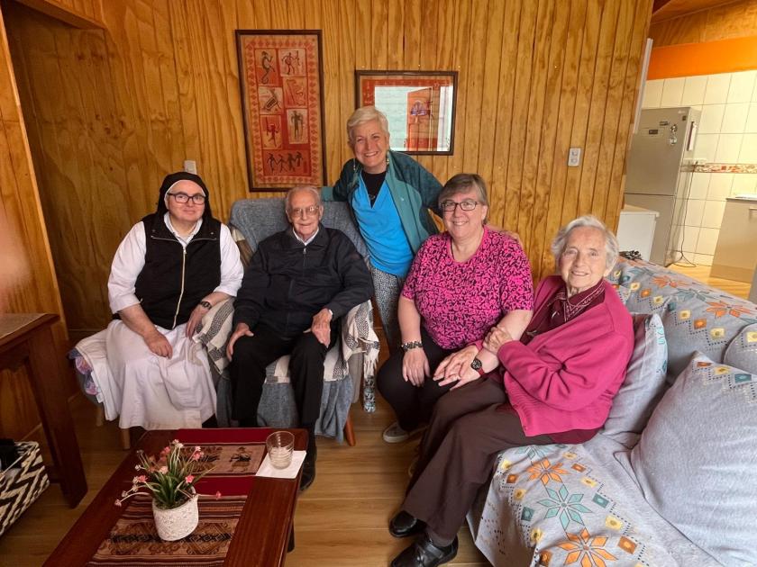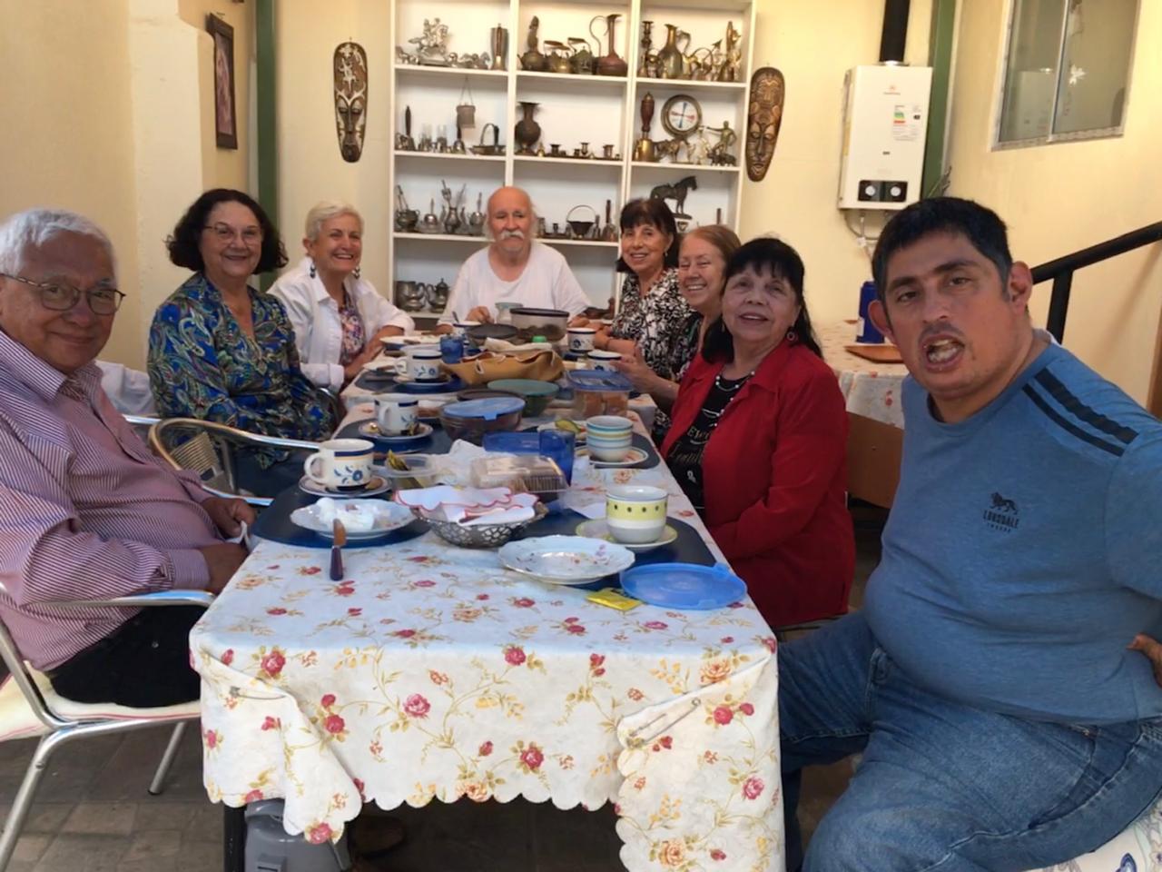 Visita a la casa de Inés Alvarado, que nos recibe con su marido, Mario, y su hijo, José Luis. Nos han invitado junto a su cuñada y su hermana a compartir una tradicional once chilena, una comida típica similar a una merienda cena, que consiste en té o café acompañado de diferentes tipos de pan e ingredientes variados. En esta ocasión, nos sirven pan con ternera, aguacate, tomate, mayonesa, queso y perritos calientes, así como dulces caseros. La sobremesa se alarga durante cuatro horas de conversación animada, compartiendo historias y experiencias. Nos despedimos con gratitud por la oportunidad de vivir este momento tan cercano y por su cálida acogida.
