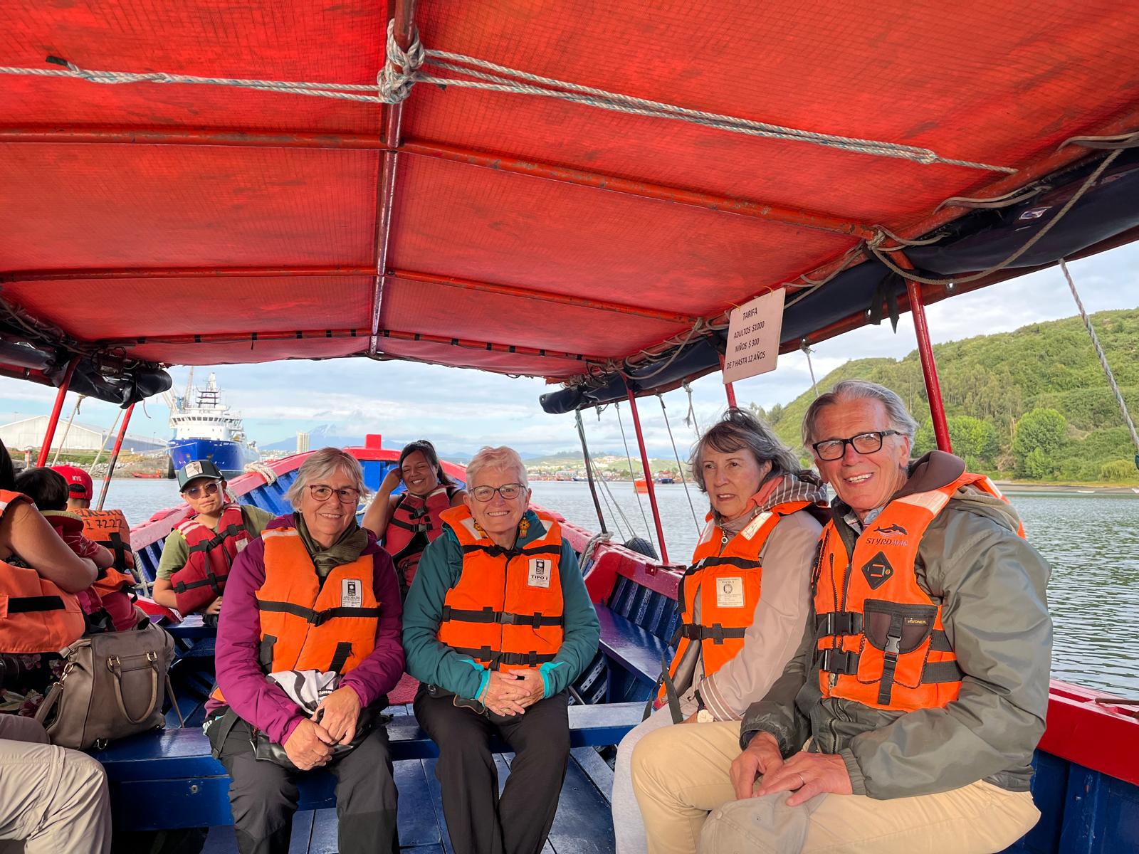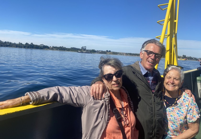 Recorrido por el canal de Tenglo, el último trayecto antes de nuestra partida. Puerto Montt nos despide con su ritmo marinero, donde abundan los barcos que crían alevines de salmón. Junto a la barca, los lobos marinos flotan entre las olas, juguetones y ágiles. Uno de ellos, perezoso sobre una roca, permanece impasible al paso de las embarcaciones, como si fuera el guardián silencioso de estas aguas. El viento me acaricia la cara y, con él, llegan las imágenes de toda la ruta de los lagos: los inmensos paisajes, los pueblos repletos de historia y los sabores. Este viaje ha sido una experiencia compartida, un descubrimiento que nos ha unido todavía más. Nos despedimos de Blanca y Jorge, quienes, con su generosidad, nos han mostrado Chile de una manera tan cálida que nos hemos sentido como si también fuera nuestro hogar. Los corazones se colman de gratitud y, entre abrazos y miradas brillantes, sabemos que esta despedida no es un adiós, sino una hasta pronto.