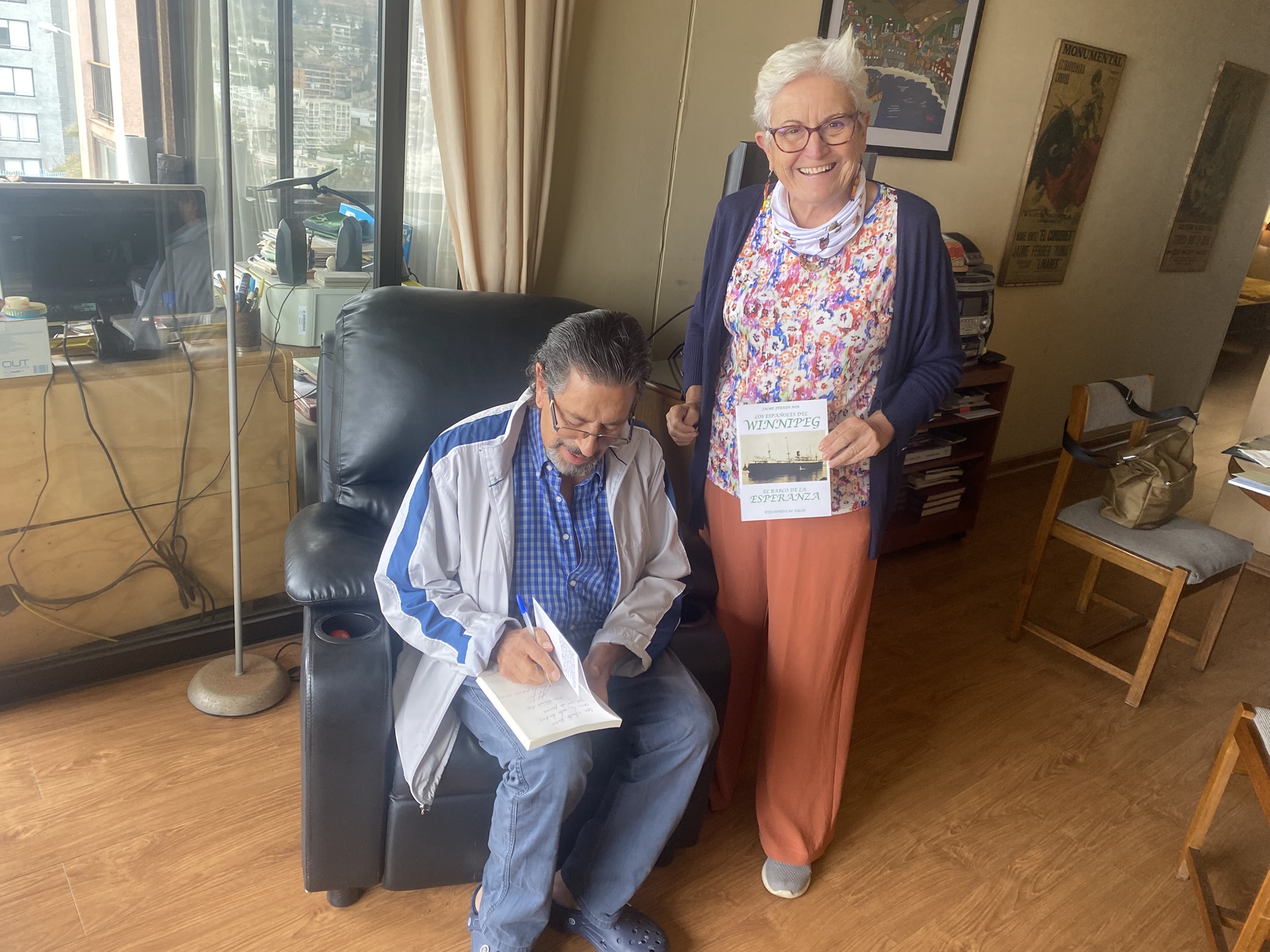 La conversación con Jaime Ferrer, descendiente de catalanes, se convierte en una experiencia de gran cordialidad y recuerdo, dado que nos invita a su apartamento en el barrio de Reñaca, en Viña, con vistas al mar que transmiten quietud y esperanza. En la entrada, detalles como la Moreneta y un escudo con la bandera nos recuerdan con orgullo sus raíces catalanas. Durante el desayuno, nos narra con emoción la historia de su padre, que llegó a Chile en barco, hecho que marcó el inicio de una nueva vida en tierras lejanas y ha impregnado su propia trayectoria de sacrificio y resiliencia. En este contexto, ha nacido su libro Los españoles del Winnipeg. El barco de la esperanza para 2200 republicanos españoles, una obra que recoge la historia del barco que llevó a Chile a 2.200 exiliados republicanos españoles, ofreciendo una visión profunda y conmovedora de un momento clave en la historia del exilio. A través de testimonios, anécdotas personales y una investigación histórica rigurosa, nos invita a comprender cómo la búsqueda de libertad y dignidad puede transformar las vidas individuales y la sociedad entera, dejándome con la sensación de un vínculo profundo con el pasado y la convicción de que, incluso en los momentos más difíciles, la esperanza puede abrir caminos hacia un futuro mejor.