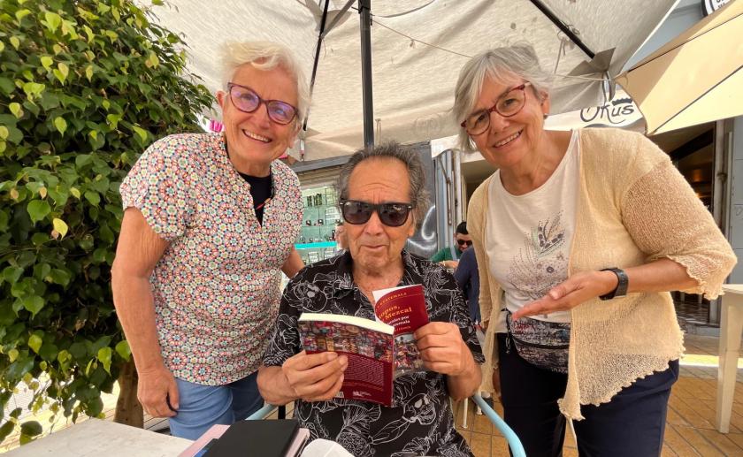El encuentro con Hernán Rivera Letelier, Premio Nacional de Literatura de Chile 2022, ha sido un momento especial. Aunque el Parkinson dificulta un poco su habla, conversamos con él con interés y admiración. Nos cuenta, con su característico sentido del humor, que pasó de ser proletario a propietario. Tiene una trayectoria impresionante, ya que ha publicado 25 libros, traducidos a 23 idiomas. En su obra ha explorado su infancia, y ahora está escribiendo sobre la juventud, además de tener una nueva novela en marcha. La conversación sobre literatura ha sido fascinante. Le regalamos mi libro de los viajes a México y Guatemala, que incluye un cuento de Rosa. Le explico que estoy leyendo su libro: Santa María de las flores negras, galardonado con el Premio Alfaguara, y le comento cómo me ha cautivado su narración, conectándome profundamente con la Cantata de Santa María de Iquique.