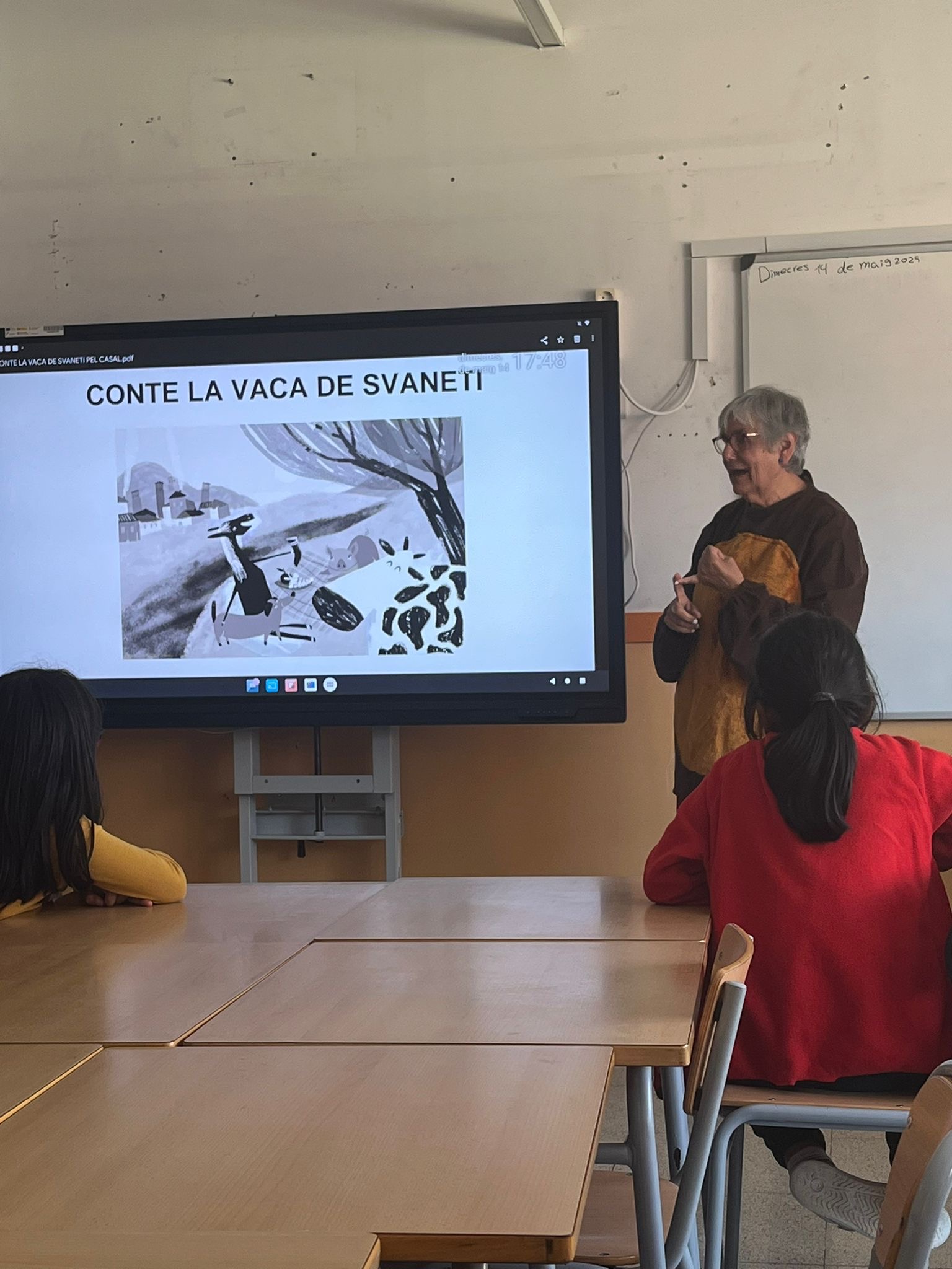 Avui hem explicat als infants del Raval de Santa Coloma de Gramenet el conte que ha escrit la Rosa “La vaca de Svaneti”. És sobre un viatge a Geòrgia, tracta de quatre animals que van d’excursió en cotxe cap al poble veí enmig de les muntanyes i les valls del Caucas. Els infants han practicat els sons de la vaca, el cavall, el porc i el gos. Han après el valor del treball en equip i en el conte s’ha mostrat com les herbes medicinals donen bon resultat, com és el cas de la camamilla que cura el gos petit. Els nens i nenes han estat atents i distrets en repetir les onomatopeies dels sons dels animals, han cantat cançons relacionades amb el conte i en acabar han fet dibuixos del que els hi ha agradat més. Hem gaudit amb els infants i educadors del casal.