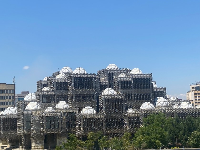 A prop, la Biblioteca Nacional desafia tota convenció arquitectònica amb les seves cúpules de vidre i formes inesperades. Pristina ens parla de transicions, de memòria i esperança, d’una societat que busca noves formes de conviure i reinventar-se.