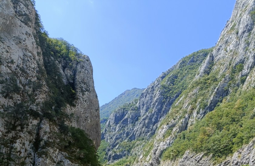 El canyó de Matka, una meravella natural on el riu Treska, el cant dels ocells i el murmuri de les fulles omplen l’aire. El primer que em captiva és el paisatge amb parets de roca verticals que s’alcen imponents a banda i banda, cobertes de verd vibrant. Comencem a caminar per un sender estret que serpenteja resseguint el llac artificial, creat l’any 1938 amb la construcció d’una petita presa. El camí, de vegades estret, ofereix vistes espectaculars al llac Matka, que reflecteix les roques i els arbres com un mirall.